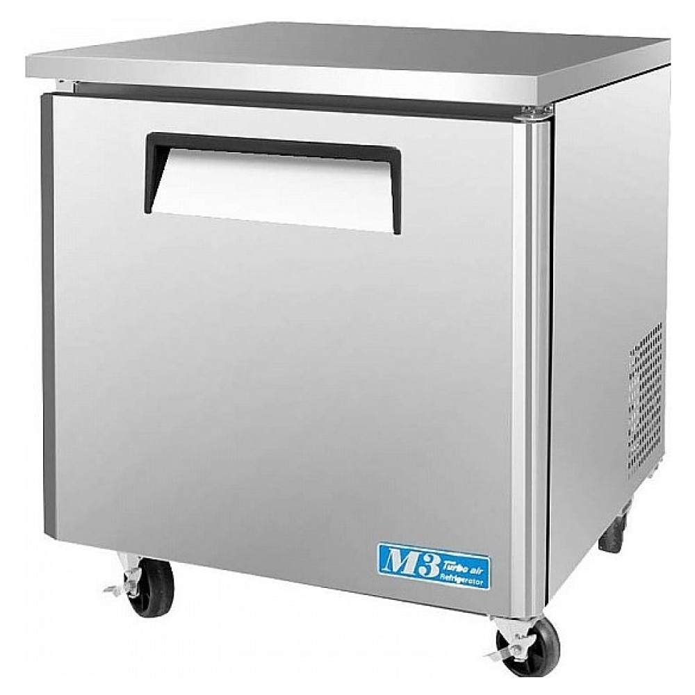 Морозильный стол Turbo air CMUF-28L предназначен для обработки, охлаждения, заморозки и длительного хранения пищевых продуктов на предприятиях общественного питания и торговли. Модель оснащена полкой, эргономичной ручкой и 4 колесами. Корпус выполнен из нержавеющей стали (гальванизированная сталь на оборотной стороне и внизу), уплотнения - из ABS-пластика, пол - из нержавеющей стали с алюминиевыми вставками по бокам и сзади, регулируемая полка - из толстой стальной проволоки с виниловым покрытием.