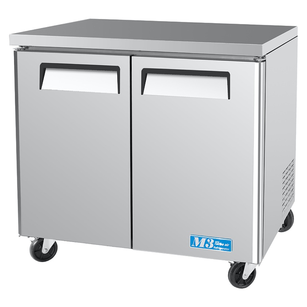 Морозильный стол Turbo air CMUF-36 состоит из рабочей поверхности, на которой можно раскатывать тесто и обрабатывать ингредиенты для приготовления блюд, и камеры, предназначенной для заморозки и хранения продуктов и полуфабрикатов на предприятиях пищевой промышленности, общественного питания и торговли. Модель оснащена 2 полками и 4 фронтальными колесами со стопорами. Корпус выполнен из нержавеющей стали (гальванизированная сталь на оборотной стороне и внизу) с применением пожаробезопасных стенок толщиной 60 мм, уплотнения - из АБС-пластика, который улучшает теплоизоляцию и не пропускает конденсат, пол - из нержавеющей стали с алюминиевыми вставками по бокам и сзади, регулируемые полки - из толстой стальной проволоки с виниловым покрытием, двери собственной конструкции оснащены петлями из высококачественной нержавеющей стали.