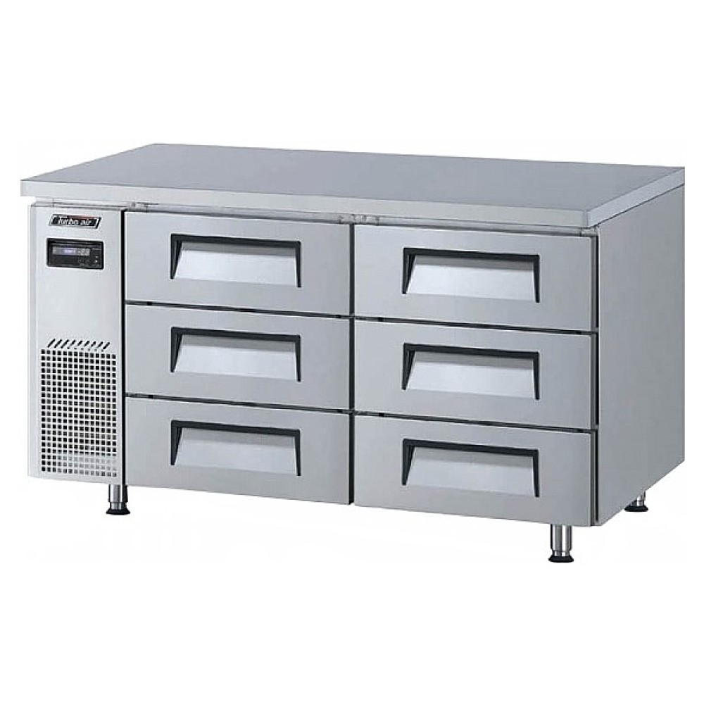 Морозильный стол Turbo air KUF15-3D-6-600 предназначен для обработки, охлаждения, заморозки и длительного хранения пищевых продуктов на предприятиях общественного питания и торговли. Модель оснащена 6 ящиками с эргономичными ручками и 4 регулируемыми ножками. Корпус выполнен из нержавеющей стали (гальванизированная сталь на оборотной стороне и внизу), пол - из нержавеющей стали с алюминиевыми вставками по бокам и сзади, тройные направляющие ящиков и ножки - из нержавеющей стали, уплотнение - из ABS-пластика.