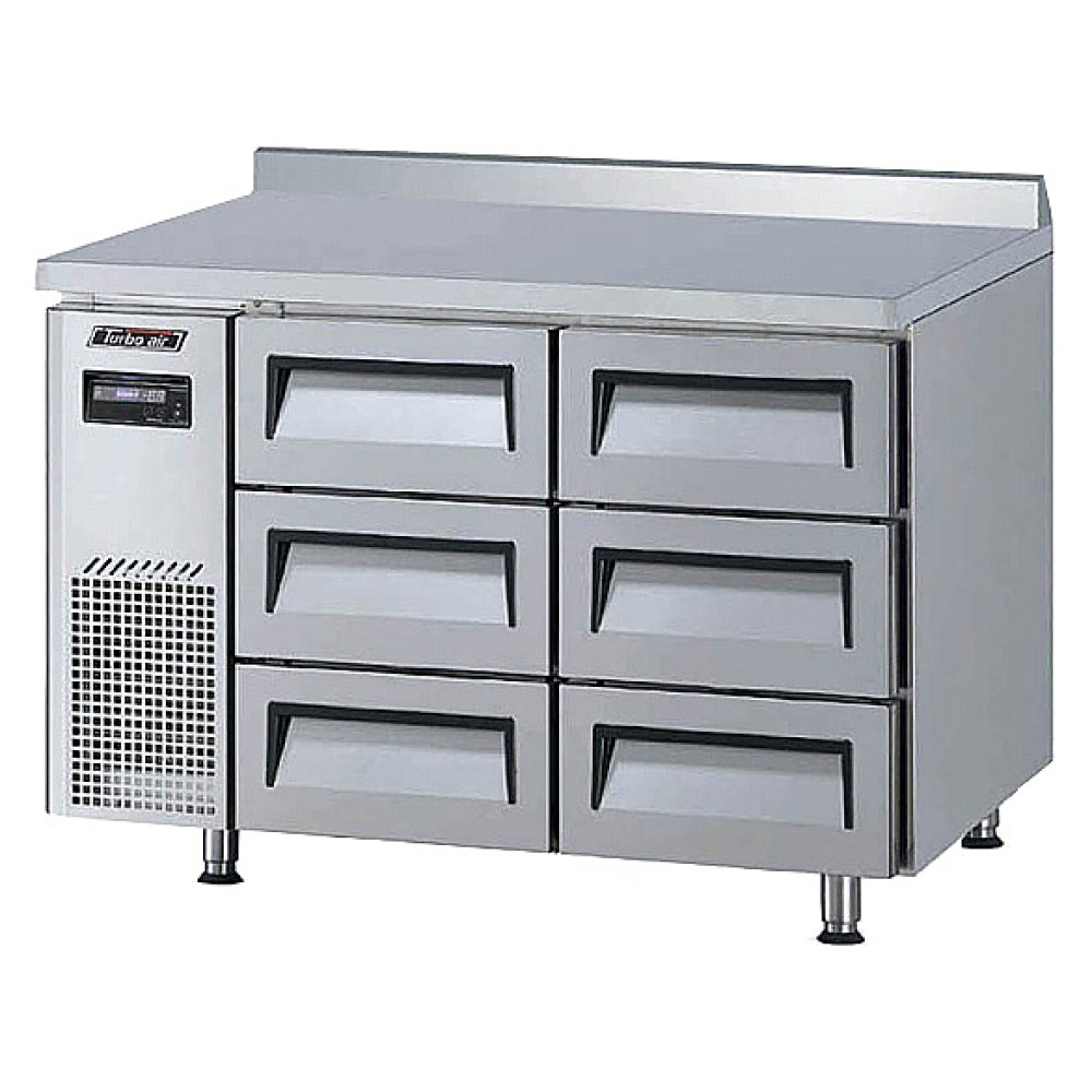 Морозильный стол Turbo air KWF12-3D-6-750 предназначен для обработки, охлаждения, заморозки и длительного хранения пищевых продуктов на предприятиях общественного питания и торговли. Модель оснащена 6 ящиками и 4 ножками. Корпус выполнен из нержавеющей стали (гальванизированная сталь на оборотной стороне и внизу), пол - из нержавеющей стали с алюминиевыми вставками по бокам и сзади, тройные направляющие ящиков - из высококачественной нержавеющей стали, уплотнение - из ABS-пластика.
