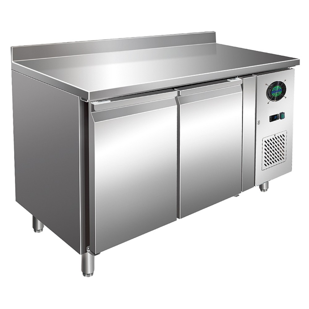 Морозильный стол VIATTO GN2200BT предназначен для обработки, охлаждения, заморозки и длительного хранения пищевых продуктов на предприятиях общественного питания и торговли. Модель оснащена расположенным сбоку агрегатным отсеком, электронным термостатом, столешницей, 2 морозильными камерами с распашными дверьми, 2 полками для гастроемкостей, устойчивыми опорами, кабелем питания и панелью управления с цифровым дисплеем. Корпус и столешница выполнены из высококачественной нержавеющей стали.
