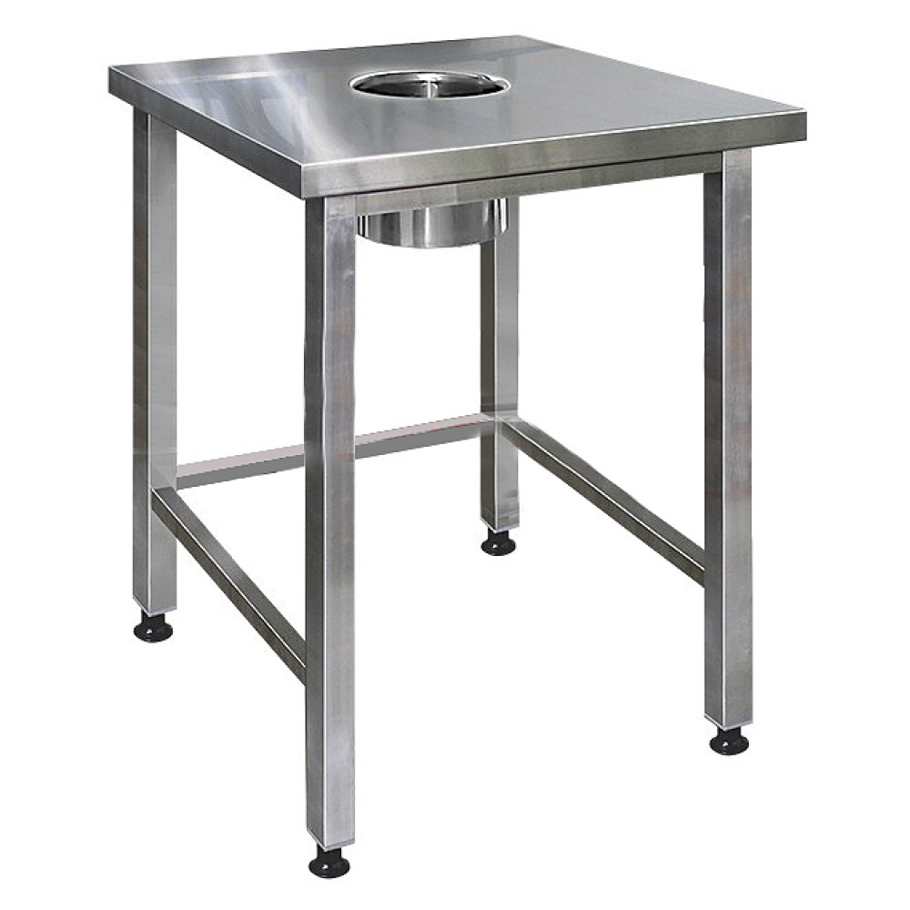 Стол для сбора отходов Finist СППО-600x600x850 мм предназначен для разделки и обработки ингредиентов для приготовления блюд, а также сбора пищевых отходов на предприятиях общественного питания и торговли. Модель оснащена обвязкой с 3 сторон и отверстием для сбора отходов по центру. Каркас выполнен из сварной трубы нержавеющей стали.