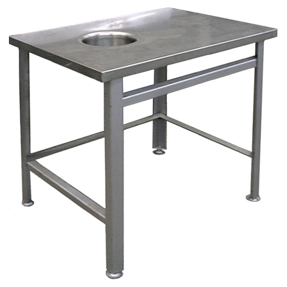 Стол для сбора отходов Hessen СПОО 9/6 используется в цехах на предприятиях общественного питания и торговли. Модель оснащена отверстием для сбора отходов, расположенным в центре. Изделие произведено с использованием программы Technology without Injuries - комплекса технологических решений, направленных на уменьшение травмоопасности для персонала, работающего на оборудовании. Каркас выполнен из углеродистой стали, покрытой полимерной краской, столешница - из пищевой нержавеющей стали.