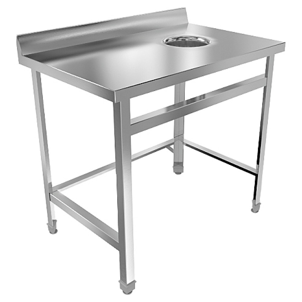 Стол для сбора отходов Техно-ТТ СПС-211/900-Л используется в цехах на предприятиях общественного питания и торговли. Модель оснащена отверстием для сбора отходов, расположенным слева, и регулируемыми по высоте ножками, что позволяет компенсировать неровности пола. Разборный каркас выполнен из конструкционного профиля, покрытого порошковой краской, столешница со звукопоглощающими подкладками - из нержавеющей стали AISI 304.