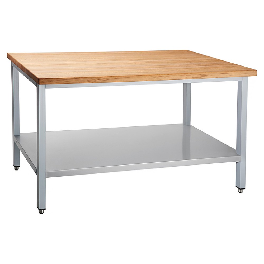 Конструкция разборная, столешница выполнена из массива бука, каркас - из квадратной трубы, покрытой порошковой краской.