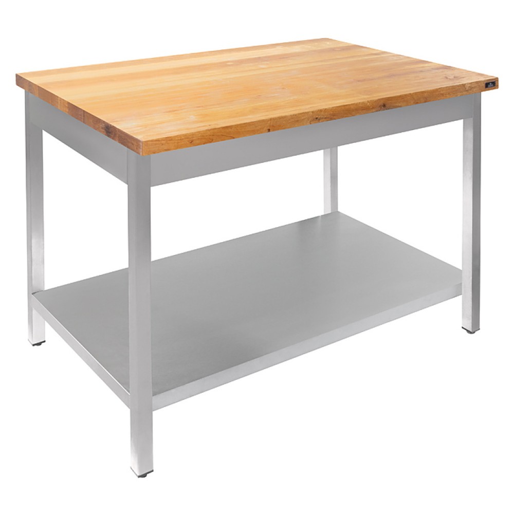 Кондитерский стол Luxstahl СК-15/8 используется на предприятиях общественного питания и торговли для работы с тестом и мукой, а также мучными и кондитерскими изделиями. Столешница выполнена из дерева толщиной 40 мм и укреплена с внутренней стороны сварным каркасом, сплошная полка и каркас - из нержавеющей стали AISI 430.
