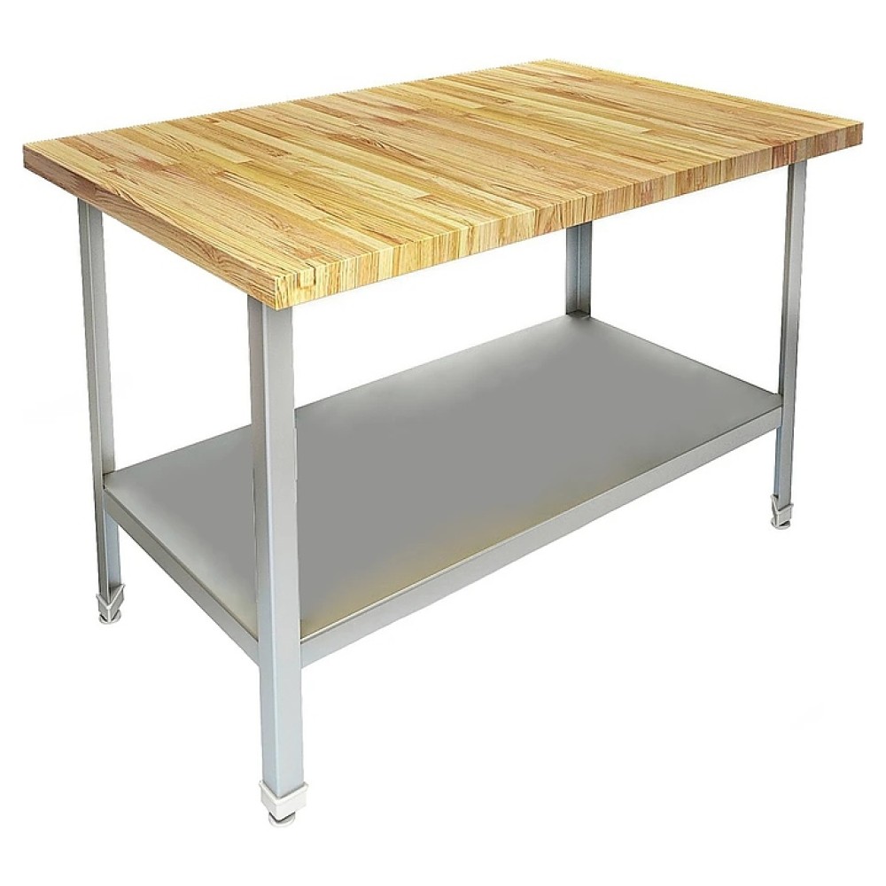 Кондитерский стол Техно-ТТ СП-313/1208 предназначен для раскатки теста и обработки ингредиентов для приготовления кондитерских и хлебобулочных изделий, а также для расстановки и хранения посуды и кухонного инвентаря на предприятиях общественного питания и торговли. Модель оснащена регулируемыми по высоте ножками, что позволяет компенсировать неровности пола. Разборный каркас выполнен из уголка крашенного металла, сплошная полка-накладка из стали AISI 430, столешница - из бука толщиной 40 мм.