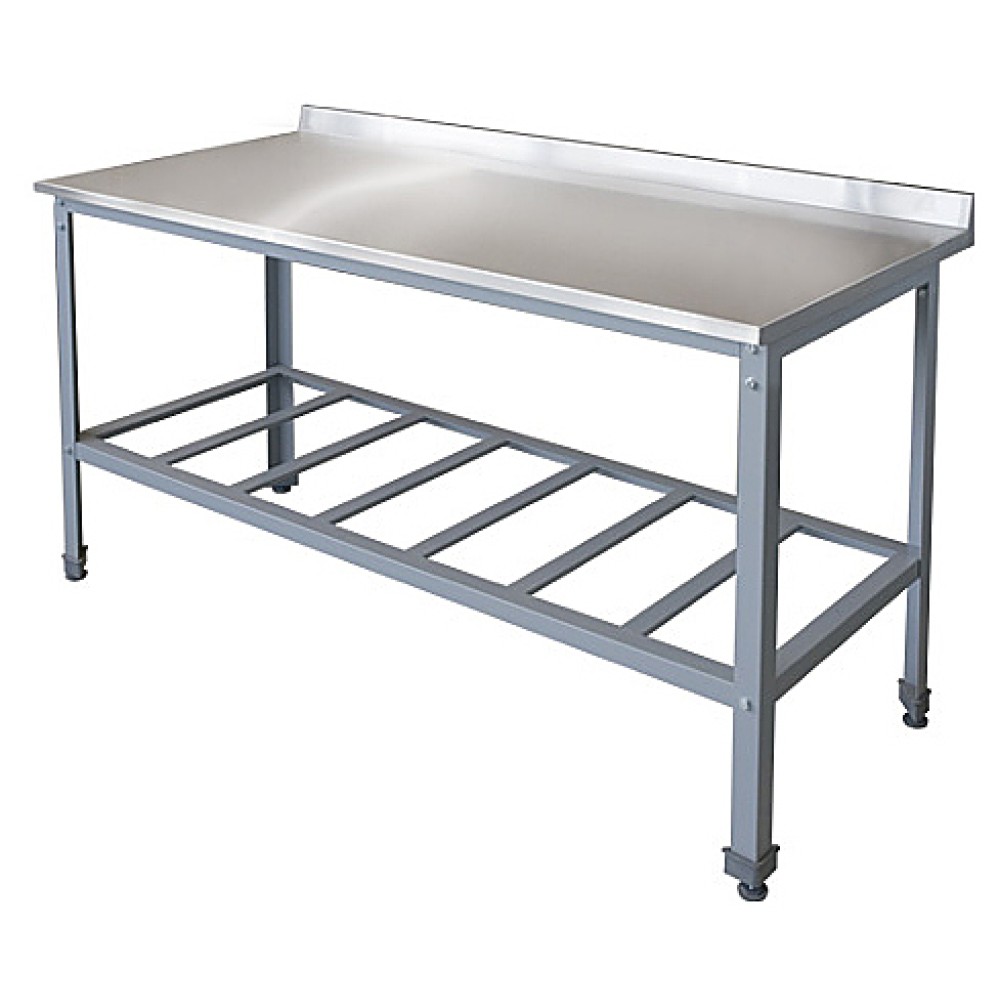 Стол пристенный ITERMA СБ 131 Э 1-606 Ш430 с полкой-решеткой и плоским бортом. Сталь AISI 430.