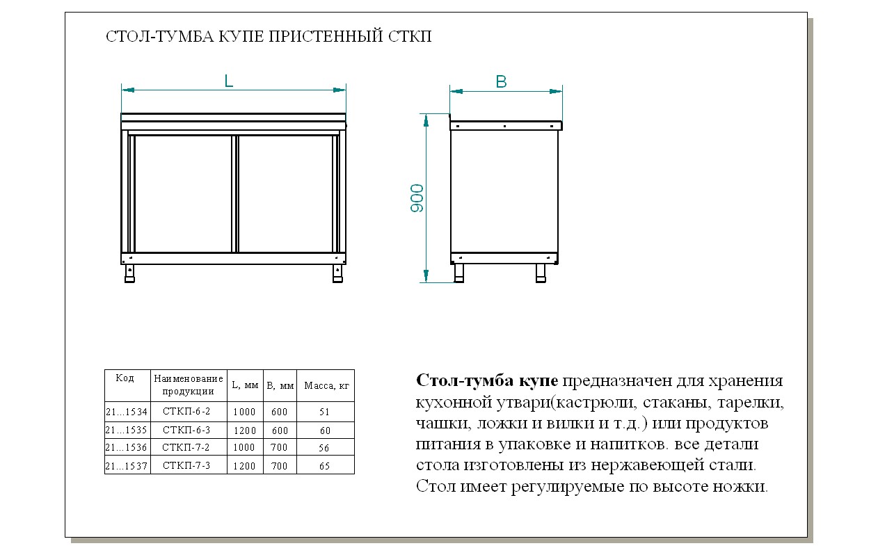 | Материал каркасанерж. сталь | Материал столешницысталь | Оснащениеполка |