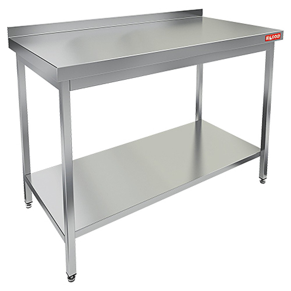 Столешница выполнена из нержавеющей стали толщиной 0,8 мм, усилена листом ДСП, опорные ножки - из трубы 40х40 мм из нержавеющей стали.