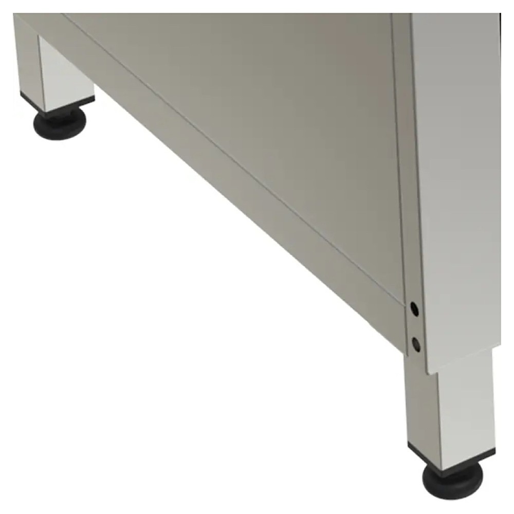 Стол-тумба Кобор СТБ/1-100/70/Р произведена из высококачественной нержавеющей стали, что позволяет использовать предмет в различных цехах. Во избежание прогибов столешница усилена листом ЛДСП толщиной 16 мм. Ножки изделия регулируются по высоте, для исключения проблем с неровным напольным покрытием, предотвращая наклон рабочей поверности.