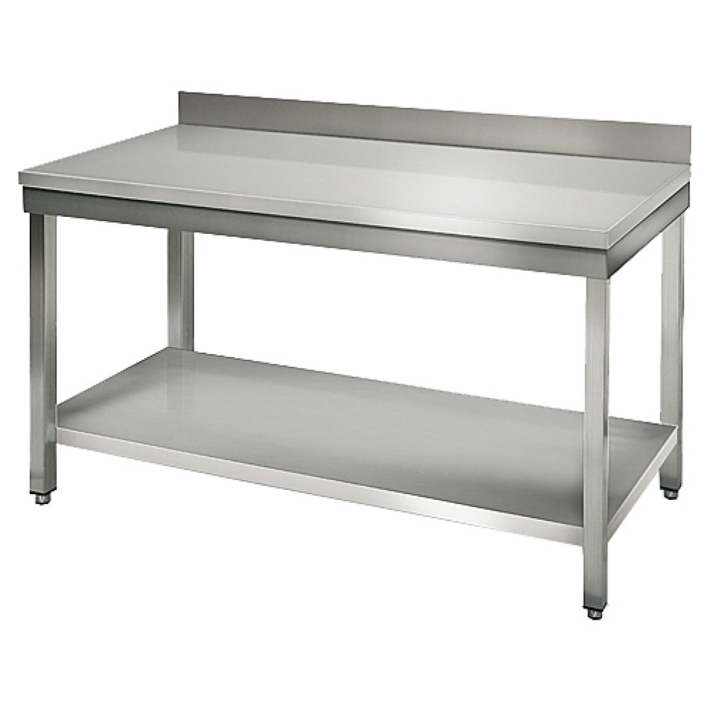 Производственный стол Kocateq SAT126A предназначен для раскатки теста и обработки ингредиентов для приготовления блюд, хранения посуды и кухонной утвари на предприятиях общественного питания и торговли. Столешница выполнена из нержавеющей стали AISI 304 толщиной 1 мм, усилена вкладкой из ДСП с ламинированием открытой сторон, каркас и полка - из нержавеющей стали AISI 201, ножки - из трубы квадратного сечения 40x40 мм, пятки - из пластика.
