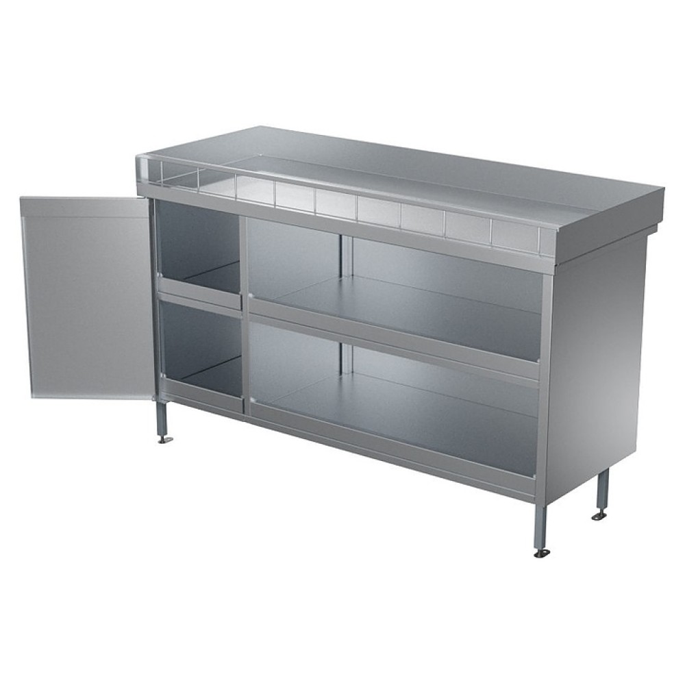 Производственный стол Проммаш СПИС-1500/600 используется на морских судах, пароходах, пассажирских лайнерах и т.д. для выдачи пищи и сбора грязной посуды. Модель оснащена открытым отсеком с 2 полками, закрытым отсеком с распашной дверью и 2 полками бортами с 3-х сторон и съемным ограждением - рейлингом. Оборудование выполнено из нержавеющей стали 12Х18H10T.