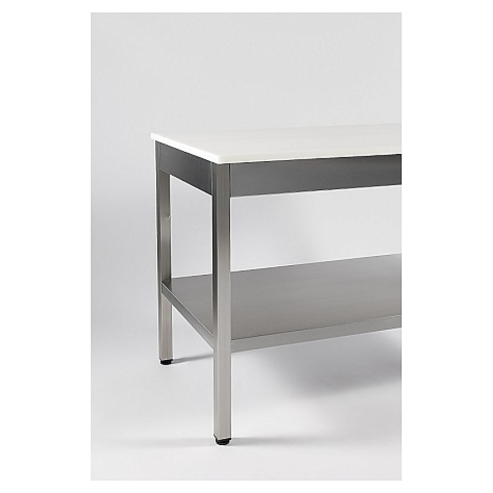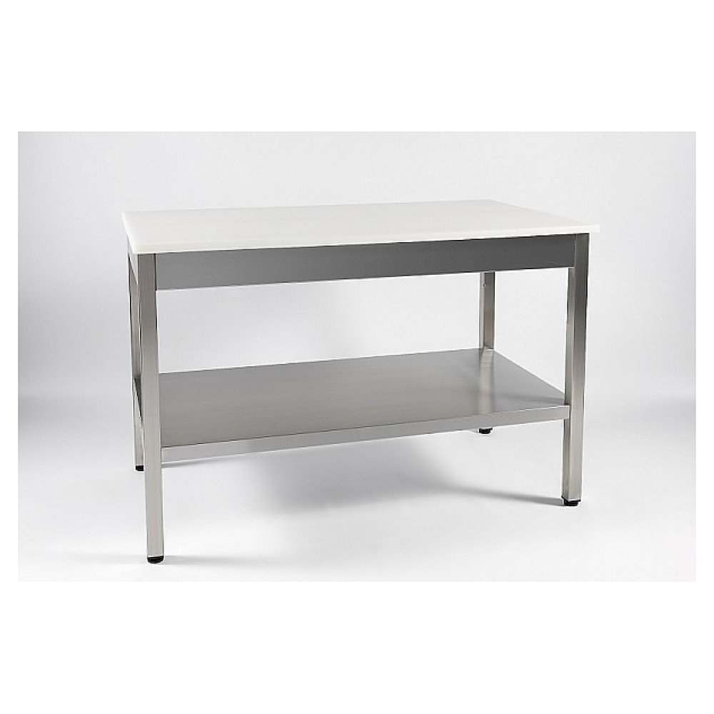 Производственный стол Restoinox СПП-20/6-П предназначен для обработки продуктов питания, раскатки теста и хранения кухонного инвентаря, также для размещения малогабаритного оборудования на предприятиях общественного питания и торговли. Модель оснащена сплошной полкой. Ножки выполнены из квадратной трубы 40х40 мм из нержавеющей стали Aisi 430 и дополнительно усилены металлическими пластинами толщиной 1 мм, полка - из нержавеющей стали Aisi 430, столешница - из полипропилена.