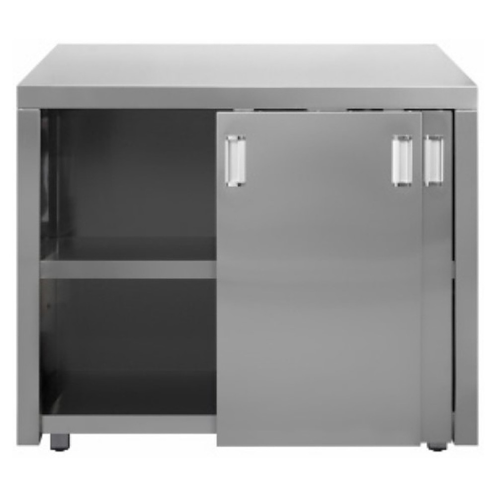 Универсальный стол-тумба Luxstahl СТУ2-16/6 предназначен для разделывания и нарезки пищевых продуктов, приготовления различных блюд, размещения оборудования и инвентаря на предприятиях общественного питания и торговли. Модель оснащена 2 дверями, прямоугольной, усиленной фанерой, столешницей и полкой. Столешница, полка и задняя стенка выполнены из высококачественной нержавеющей стали AISI 430, каркас – из нержавеющей стали AISI 430.