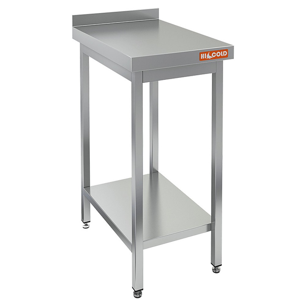 Столешница выполнена из нержавеющей стали толщиной 0,8 мм, усилена листом ДСП, опорные ножки - из трубы 40х40 мм из нержавеющей стали.