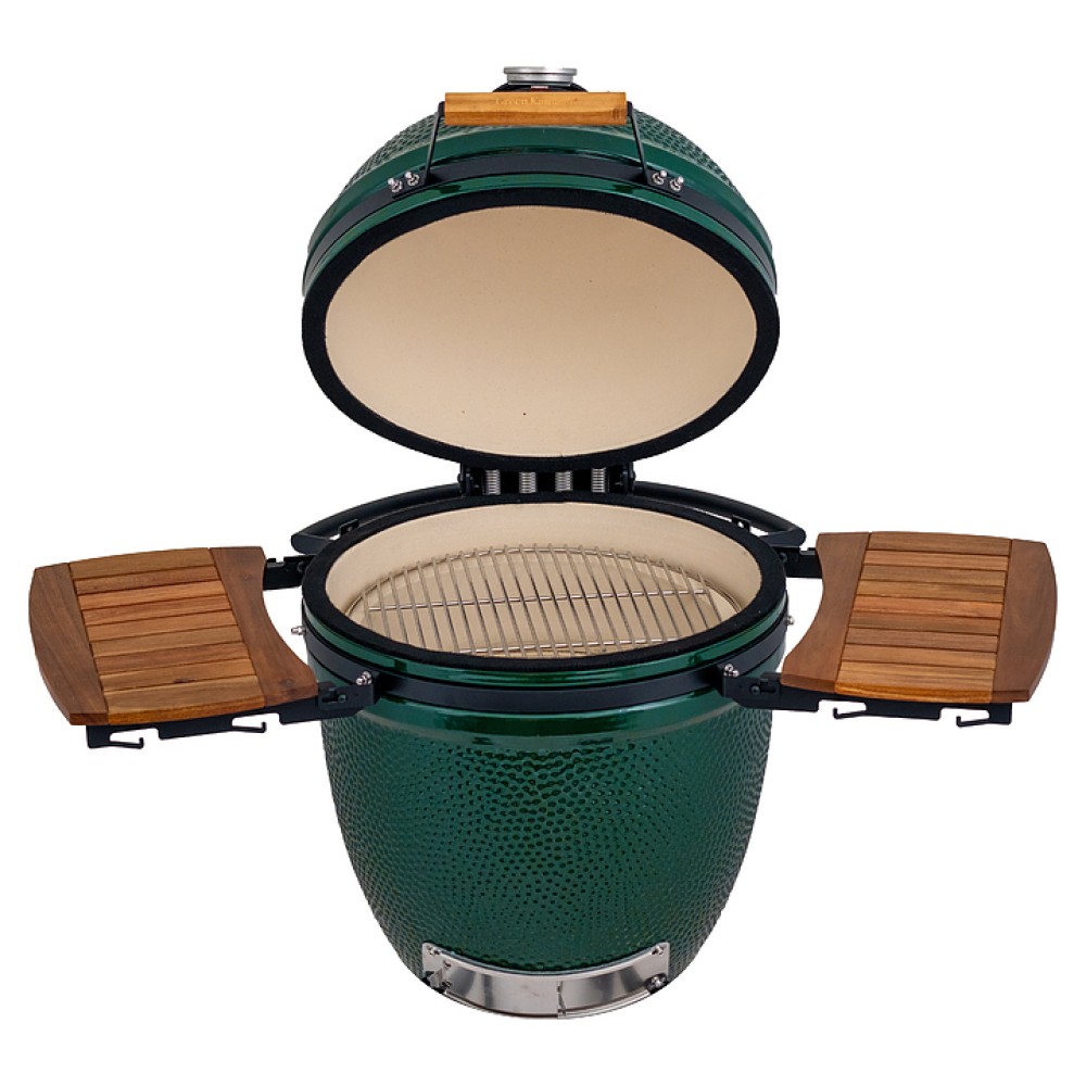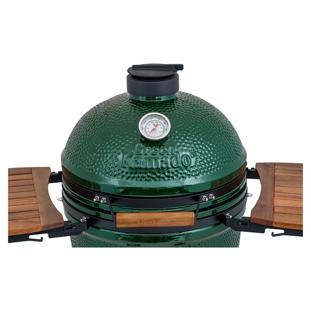 Складные столики используются совместно с керамическим грилем Green Kamado II L для организации рабочего пространства и установки посуды, на крючки можно повесить инструменты. Столики легко устанавливаются и отсоединяются. Рабочая поверхность каждого столика обеспечивает достаточно места для размещения специй, соусов, инструментов для гриля и готовых блюд. Аксессуар выполнен из прочной, влагостойкой и ценной древесины.