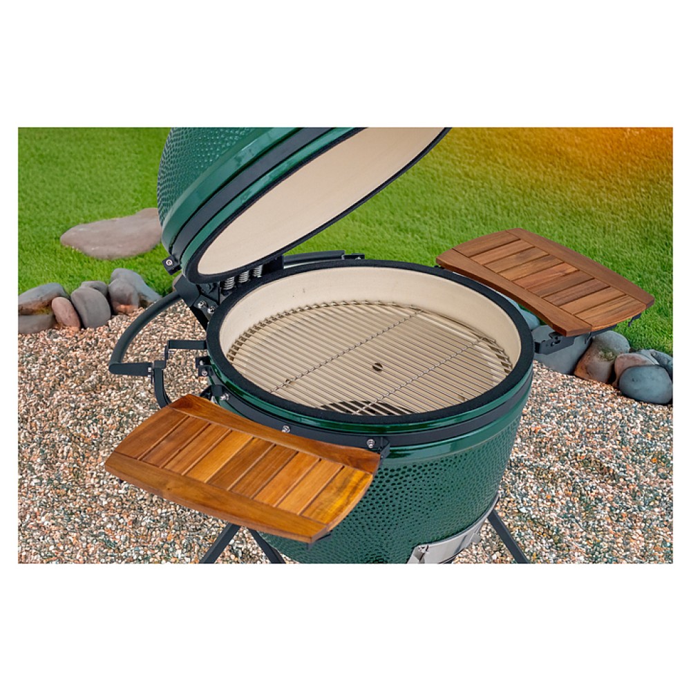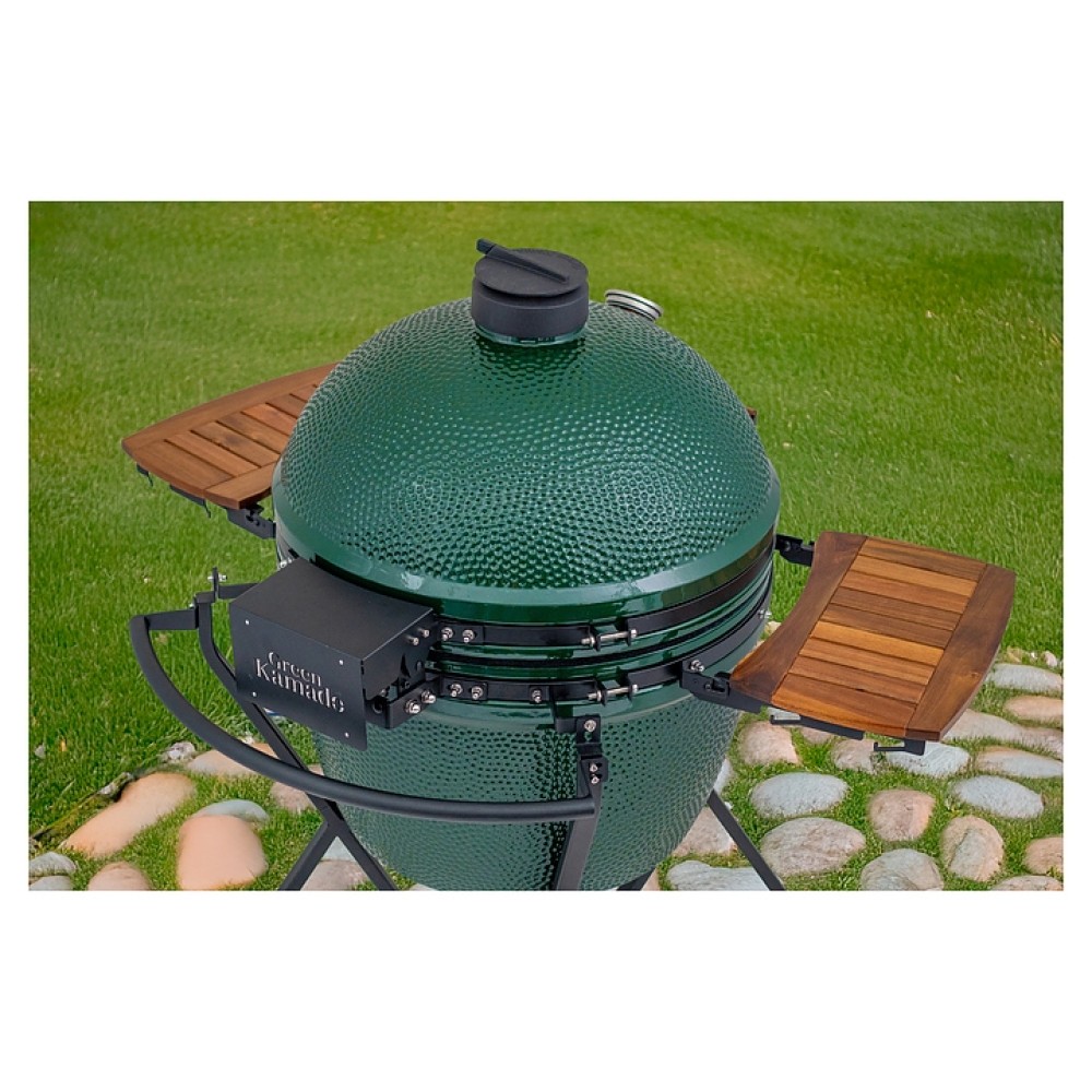 Складные столики используются совместно с керамическим грилем Green Kamado II XL для организации рабочего пространства и установки посуды, на крючки можно повесить инструменты. Столики легко устанавливаются и отсоединяются. Рабочая поверхность каждого столика обеспечивает достаточно места для размещения специй, соусов, инструментов для гриля и готовых блюд. Аксессуар выполнен из прочной, влагостойкой и ценной древесины.