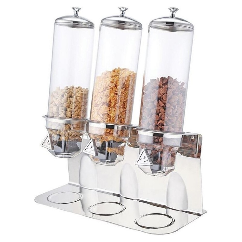 Диспенсер Sunnex U13-1300 используется на предприятиях общественного питания и в домашних условиях для порционной раздачи сыпучих продуктов, таких как мюсли или кукурузные хлопья. Модель состоит из 3 емкостей с рукоятками и подставки. Изделия выполнены из прозрачного материала.