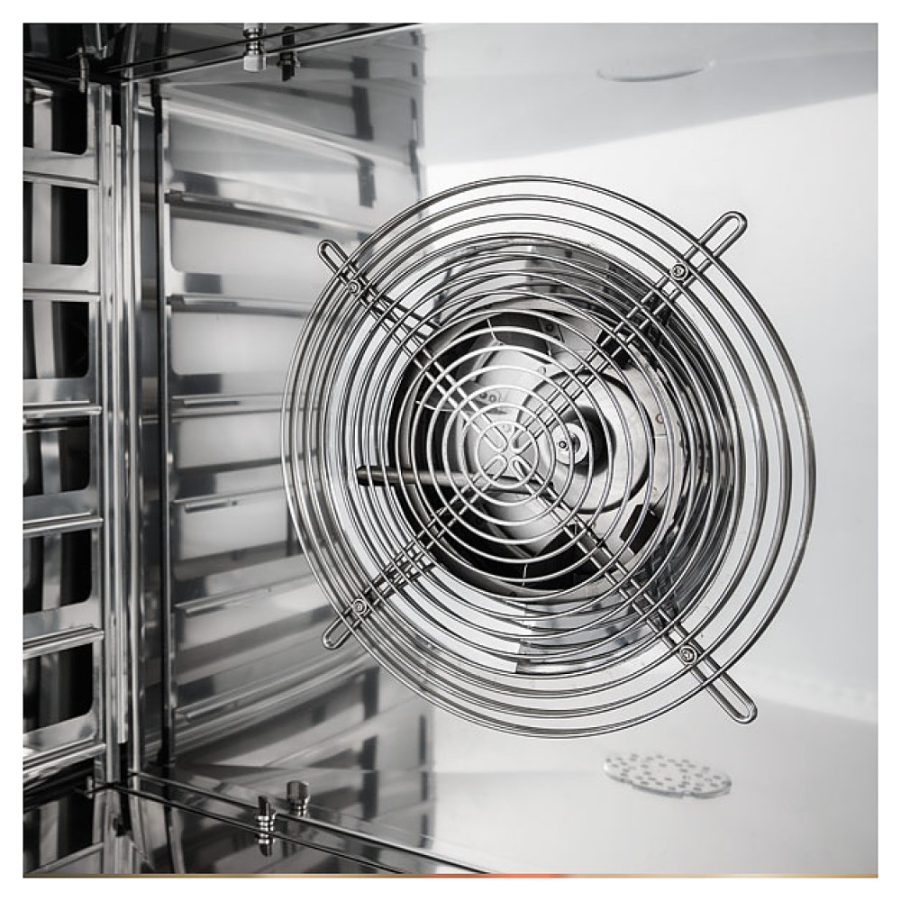 Пароконвектомат Tecnodom NERONE MID 10T DIGITALE предназначен для приготовления широкого спектра блюд, выпечки хлебобулочных и кондитерских изделий в гостиничном и ресторанном бизнесе, на предприятиях пищевой промышленности, общественного питания и торговли. Модель оснащена рабочей камерой с универсальными направляющими для гастроемкостей, паровым отверстием в верхней части, левосторонней герметично запираемой дверью с обзорным остеклением и поворотной рукояткой, а также электронной панелью управления с функциональными кнопками и 2 цифровыми дисплеями индикации. Корпус, внутренняя облицовка камеры, опоры и направляющие выполнены из высококачественной нержавеющей стали.