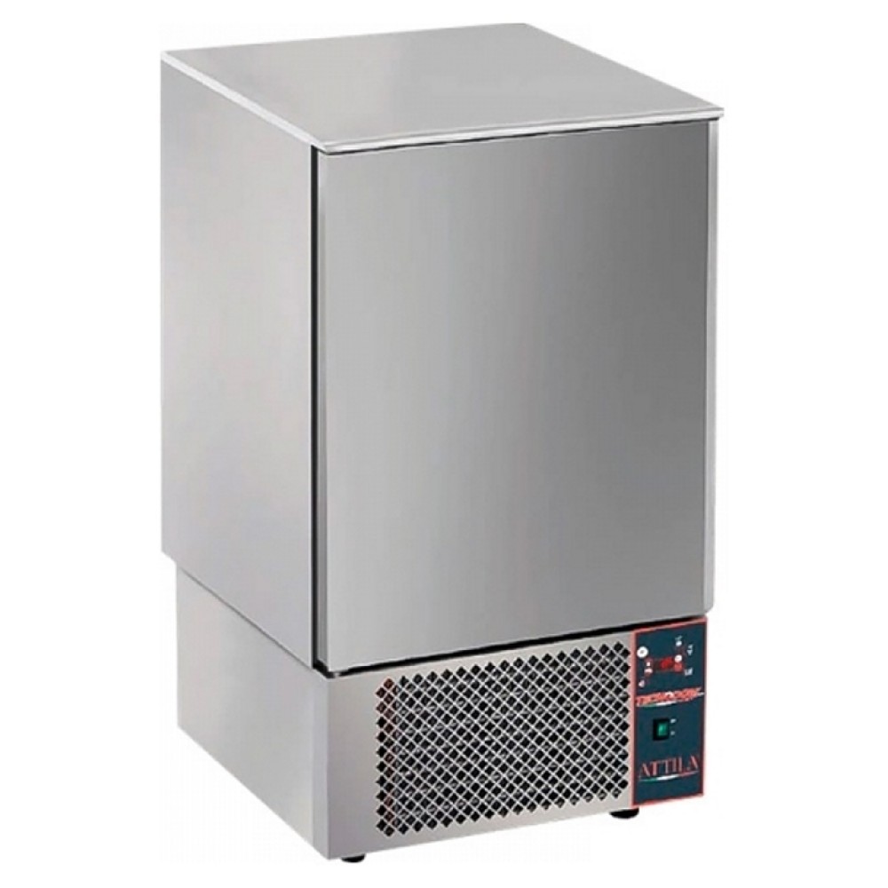 Шкаф шоковой заморозки Tecnodom ATT10 серии Attila предназначен для быстрого охлаждения и заморозки большого объема продукции с сохранением ее первоначальных свойств на на предприятиях общественного питания и торговли. Модель оснащена рабочей камерой с универсальными направляющими для гастроемкостей, распашной дверью, подставкой с встроенным холодильным агрегатом, электронным блоком управления с кнопочной панелью и цифровым дисплеем. Внутренняя и внешняя облицовка камеры, опоры и направляющие выполнены из высококачественной нержавеющей стали, внешняя облицовка основания – из оцинкованной стали, термоизоляция камеры – из залитого под высоким давлением пенополиуретана без содержания опасных хлорфторуглеродов (CFC).