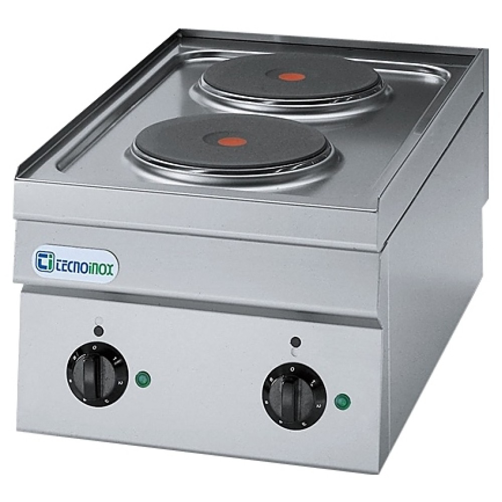 Электрическая плита Tecnoinox PC35E/6/0 серии Tecno60 предназначена для приготовления первых, вторых, третьих блюд в наплитной посуде на предприятиях общественного питания и торговли. Модель оснащена независимым термостатом для каждой конфорки и дополнительным термостатом для предотвращения перегрева и сокращения потребления энергии. Корпус изготовлен из нержавеющей стали AISI 304. Оборудование может быть расположено на подставке у стены или как центральный остров.