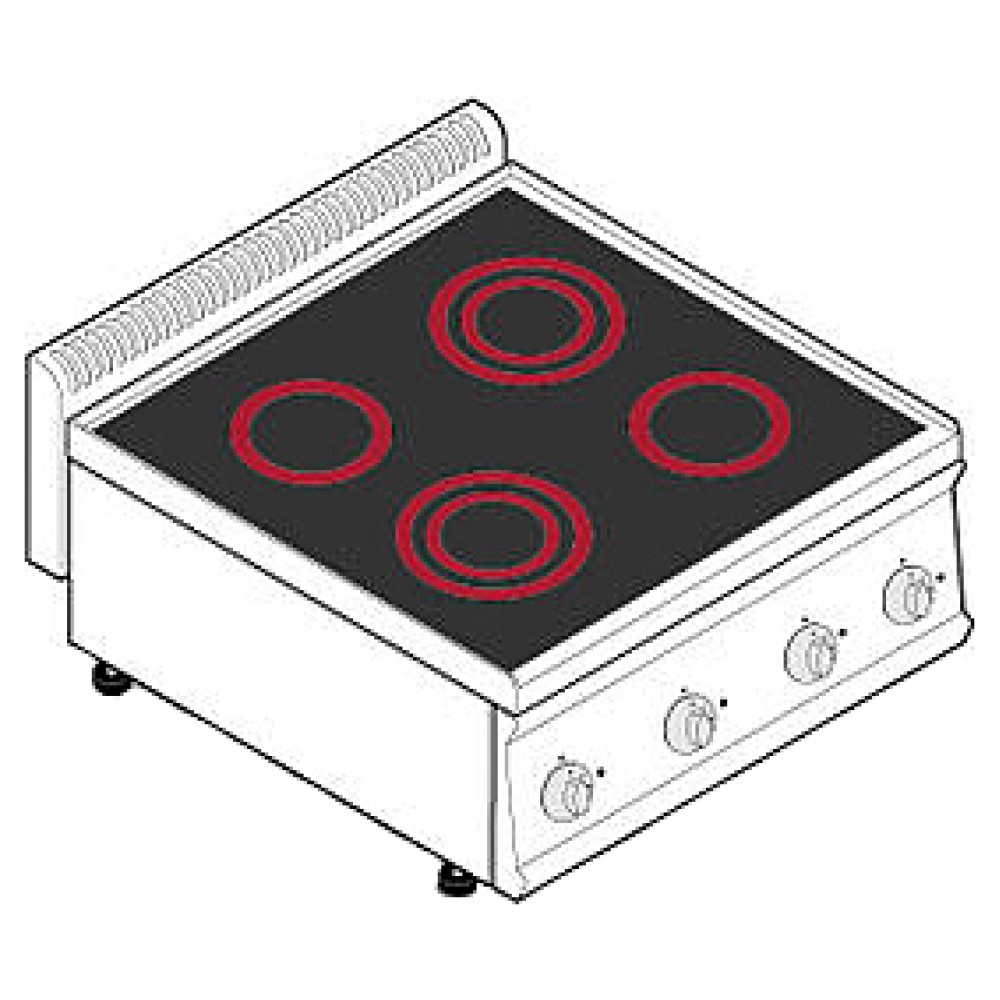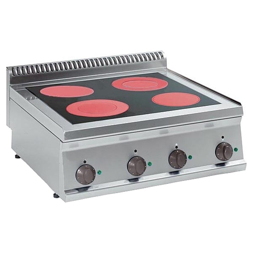 Электрическая плита Tecnoinox PCC70E7 серии Tecno70 предназначена для приготовления первых, вторых, третьих блюд в наплитной посуде на предприятиях общественного питания и торговли. Модель оснащена независимым термостатом для каждой конфорки и дополнительным термостатом для предотвращения перегрева и сокращения потребления энергии. Корпус изготовлен из нержавеющей стали AISI 304, рабочая поверхность - из стеклокерамики. Оборудование может быть расположено на подставке у стены или как центральный остров.