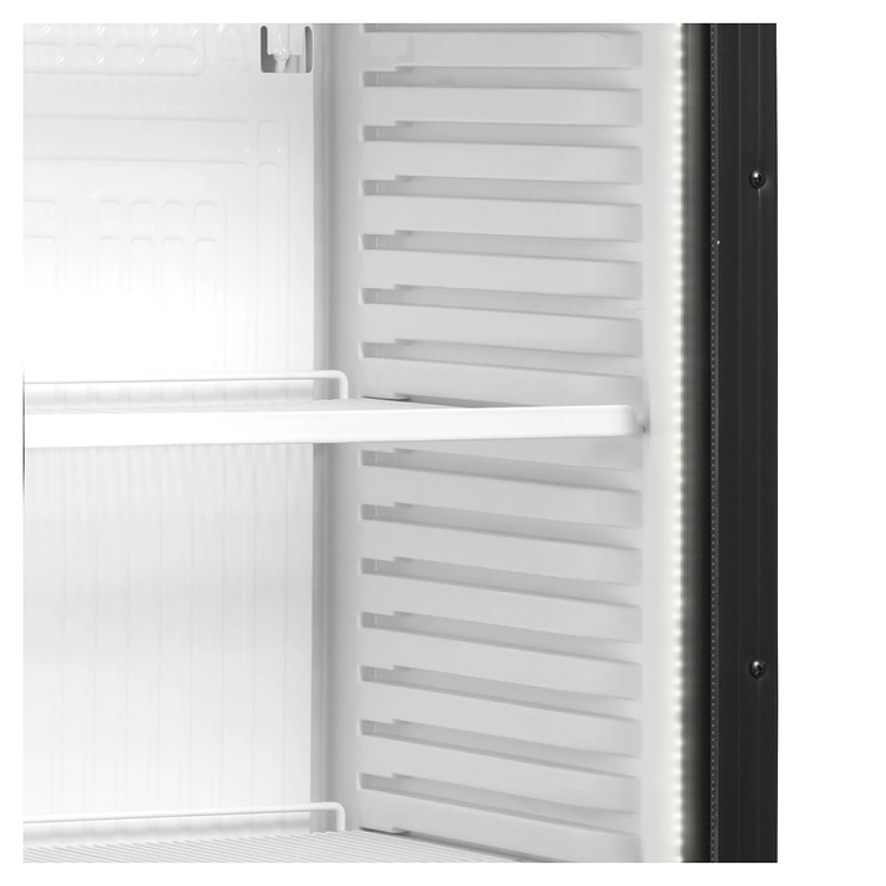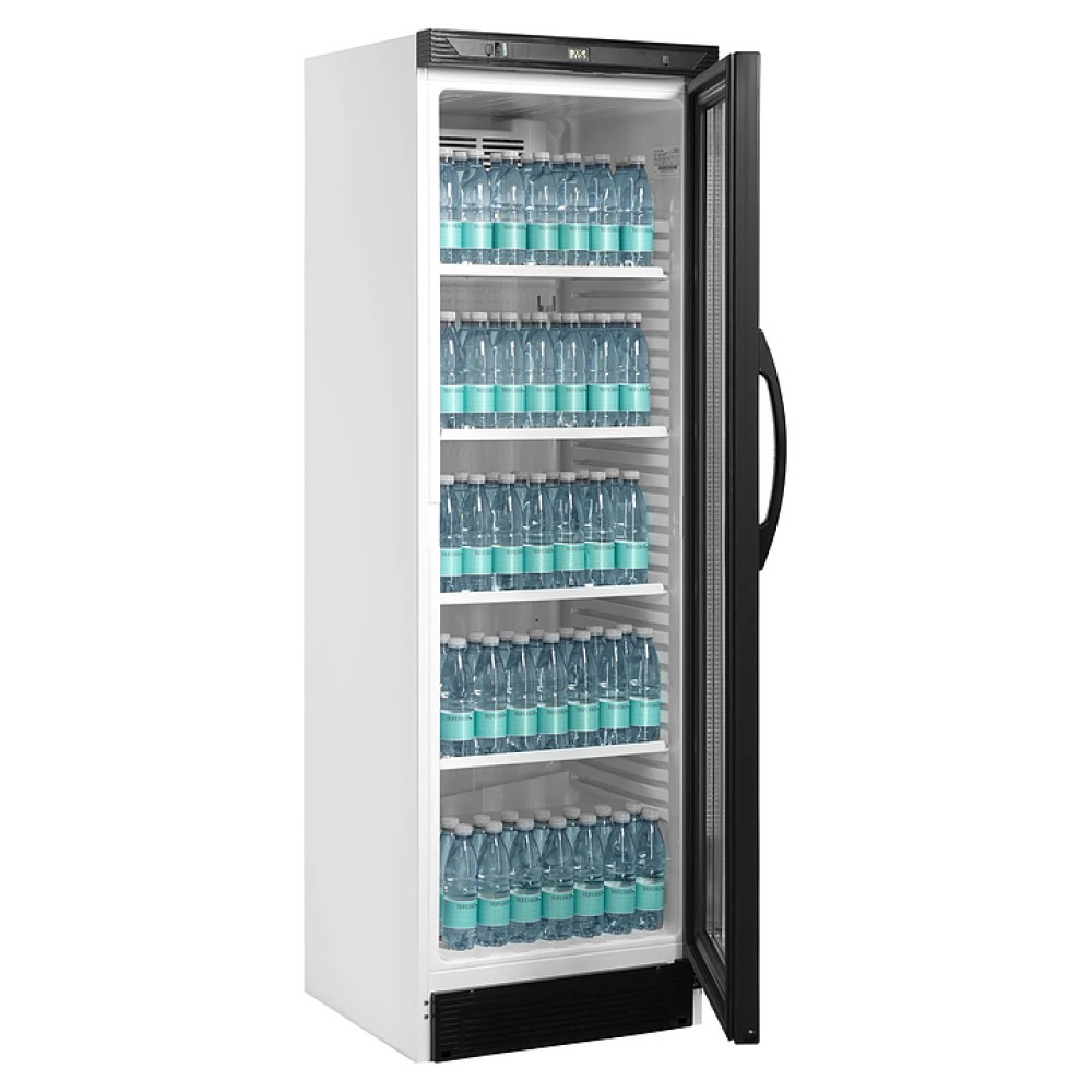 Холодильный шкаф TEFCOLD CEV425 1 LED предназначен для кратковременного хранения и предпродажной демонстрации напитков на предприятиях общественного питания и торговли. Модель оснащена 5 полками-решетками, 2 регулируемыми по высоте ножками, 2 роликами и распашной дверью с замком. Внутренняя облицовка камеры выполнена из АБС-пластика белого цвета, экстерьер боковин белого цвета, фронт черного цвета.