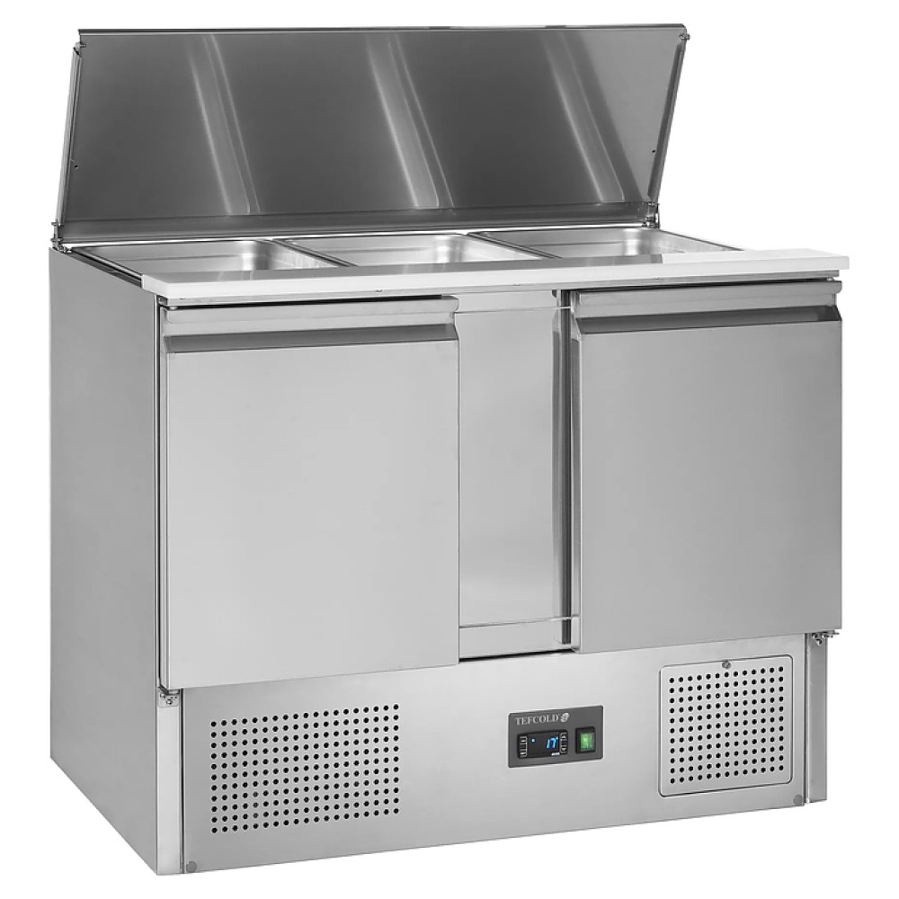 Холодильный стол TEFCOLD SA1045 предназначен для обработки ингредиентов, используемых для приготовления салатов, охлаждения и кратковременного хранения продуктов на предприятиях общественного питания и торговли. Корпус и внутренняя обшивка выполнены из нержавеющей стали AISI 304.