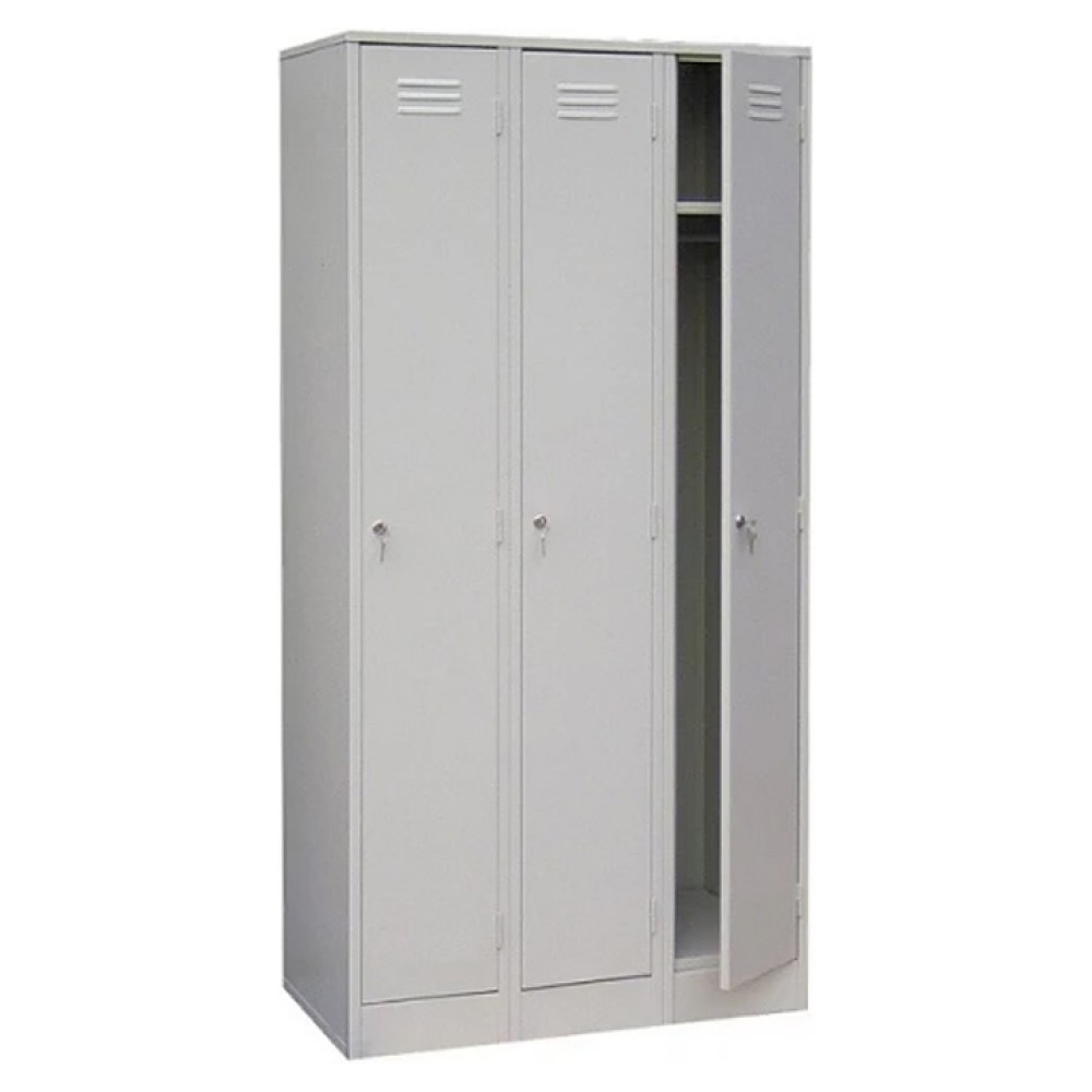 Шкаф Техно-ТТ СТК-893/800 предназначен для хранения одежды и других личных вещей персонала на предприятиях общественного питания и торговли. Модель оснащена 3 секциями с 2 полками и крючками в каждой, распашными дверями с замками и регулируемыми по высоте ножками, что позволяет компенсировать неровности пола. Сварной каркас, сплошные полки и задняя стенка выполнены из черного металла, покрытого порошковой краской.