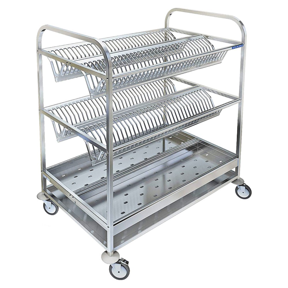 Тележка Техно-ТТ ТП-234К предназначена для сушки, транспортировки и хранения посуды на предприятиях общественного питания и торговли. Модель оснащена съемным поддоном для сбора жидкости и 4 колесами, 2 из которых с тормозными устройствами. Разборный каркас выполнен из квадратной трубы из нержавеющей стали AISI 304, поддон - из нержавеющей стали.