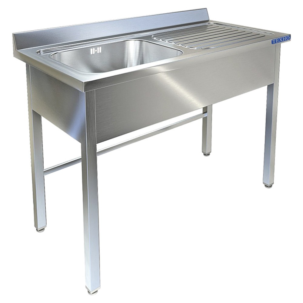 Моечная ванна Техно-ТТ ВМ-33/668Л используется на предприятиях общественного питания и торговли для мытья и ополаскивания продуктов, посуды и различного инвентаря. Модель с гладкой рабочей поверхностью, фартуком с 3 сторон, закругленными краями и шумопоглощающей изоляцией снизу мойки оснащена обнижением, которое препятствует попаданию воды за пределы столешницы, объемным пристенным бортом, механическим запорным клапаном и регулируемыми по высоте ножками, позволяющими компенсировать неровности пола. Сварной каркас выполнен из трубы 40х40х1,2 мм из нержавеющей стали AISI 430, цельнотянутая мойка - из нержавеющей стали AISI 304 толщиной 1 мм, выпуск - из нержавеющей стали.