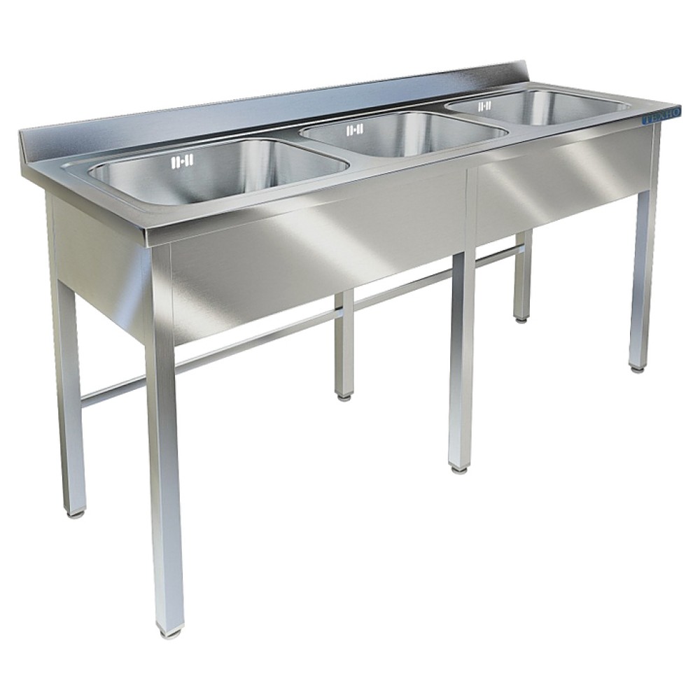 Моечная ванна Техно-ТТ ВМ-42/446 используется на предприятиях общественного питания и торговли для мытья и ополаскивания продуктов, посуды и различного инвентаря. Модель с фартуком с 3 сторон, закругленными краями и шумопоглощающей изоляцией снизу моек оснащена обнижениями, которые препятствуют попаданию воды за пределы столешницы, и регулируемыми по высоте ножками, что позволяет компенсировать неровности пола. Сварной каркас выполнен из трубы из нержавеющей стали AISI 304, цельнотянутые мойки - из нержавеющей стали AISI 304 толщиной 1 мм, выпуск - из нержавеющей стали.