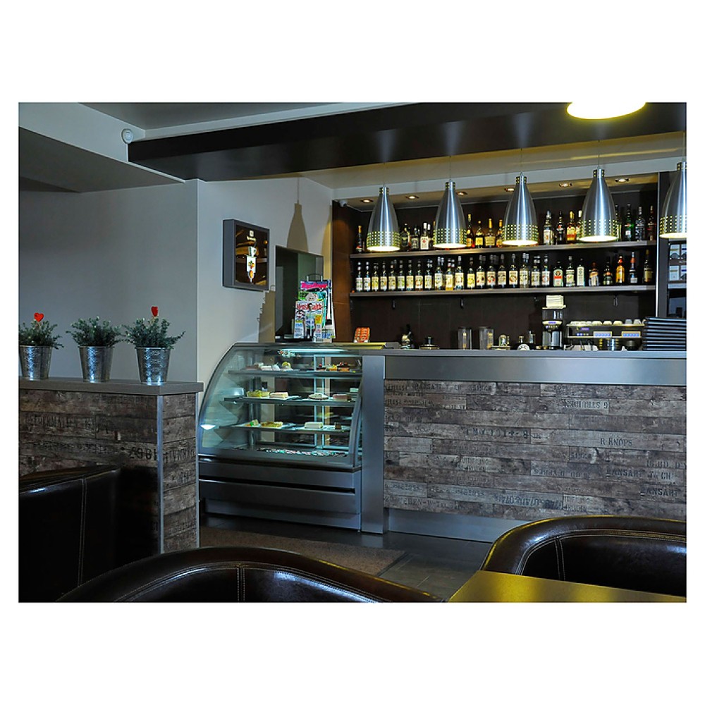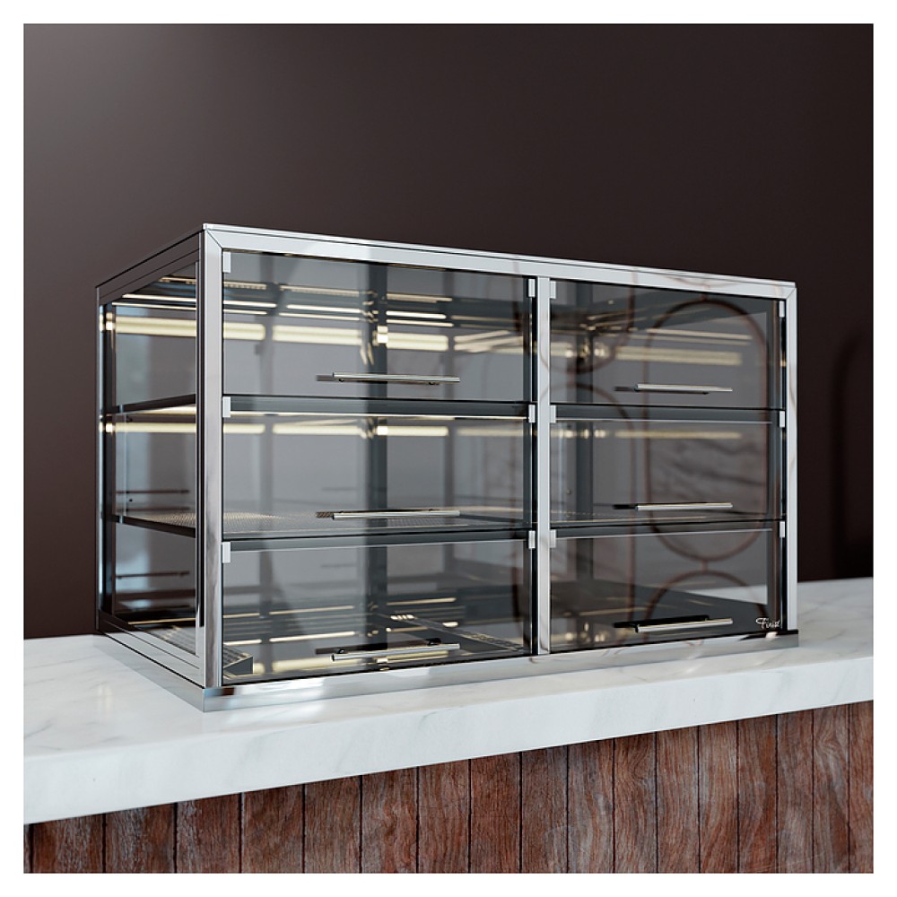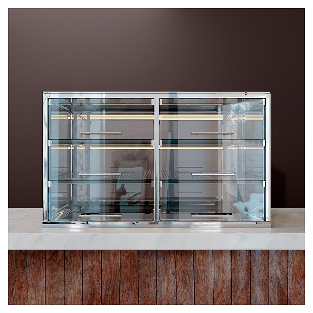 Тепловая витрина ТехноБалт Вена 1,00 предназначена для демонстрации, подогрева и кратковременного хранения свежей выпечки на предприятиях общественного питания и торговли. Модель оснащена 3 полками, основанием и регулируемыми ножками. Нижняя часть витрины и рамка стекла окрашены порошковой краской. Столешница выполнена из нержавеющей стали.