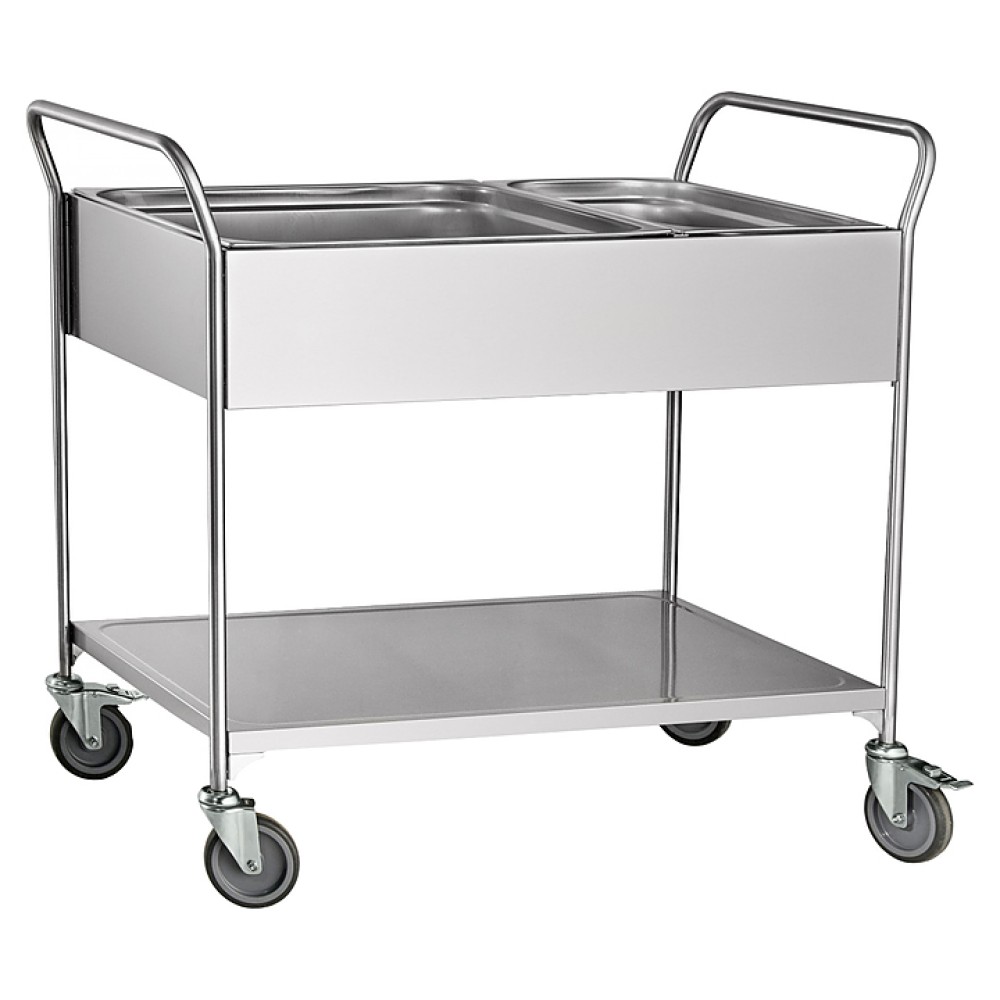 Тележка для сбора посуды Abat ТС-100 предназначена для транспортировки использованных тарелок, стаканов, столовых приборов и инвентаря на предприятиях общественного питания и торговли. Модель оснащена 2 фиксированными и 2 поворотными колесами.