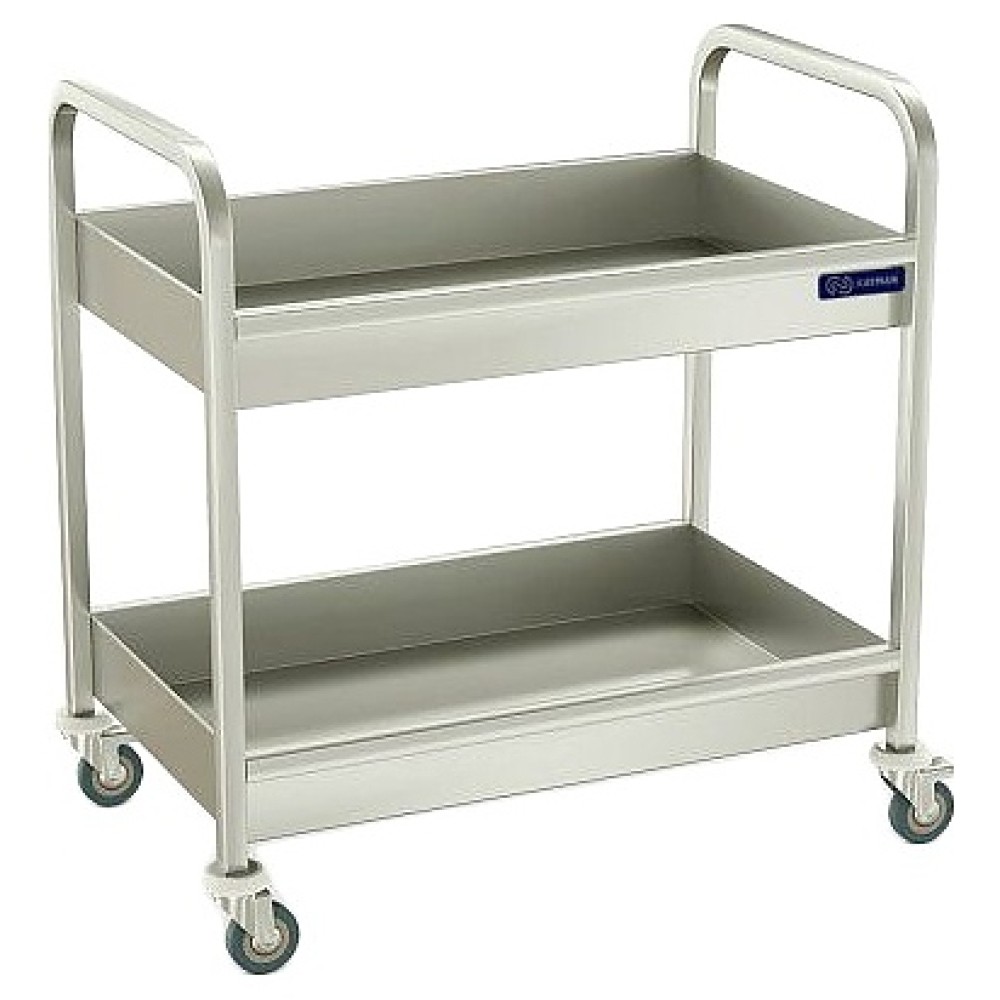 Тележка KAYMAN ТСП-11/290-А используется на предприятиях общественного питания для транспортировки грязной посуды из зала приема пищи в моечное отделение. Модель оснащена 2 сплошными полками с бортами. Полки выполнены из листовой нержавеющей стали марки AISI 304, каркас – из профиля трубы квадратного сечения из нержавеющей стали марки AISI 304.