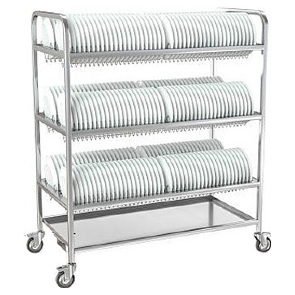 Тележка KAYMAN ТТ-13/3-А используется на предприятиях общественного питания для сушки, хранения и транспортировки посуды. Модель оснащена 3 уровнями решетчатых кассет с двойными рядами ячеек для тарелок и поддоном-каплесборником. Поддон выполнен из листовой нержавеющей стали марки AISI 304, кассеты – из прутка из нержавеющей стали AISI 304, каркас – из профиля трубы квадратного сечения из нержавеющей стали AISI 304.