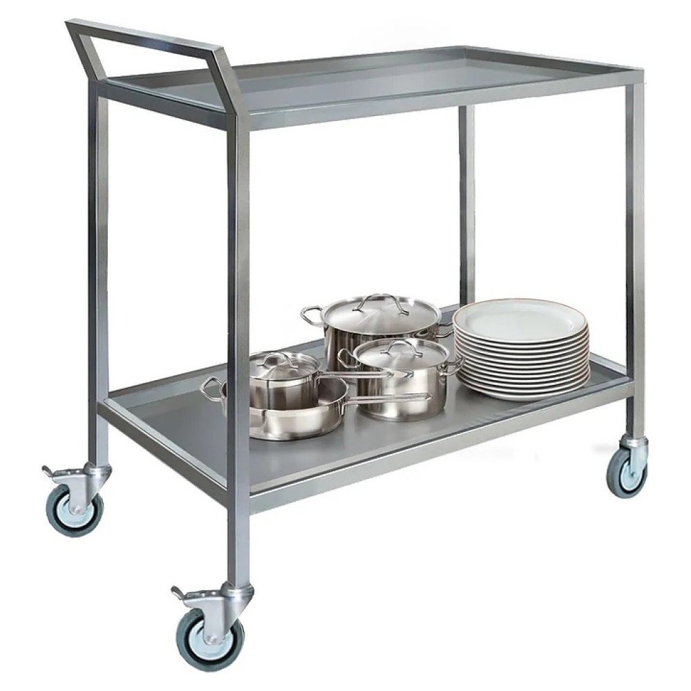 Тележка Finist ТС 900х600х850 мм используется на предприятиях общественного питания для транспортировки готовых блюд, напитков и посуды в зал приема пищи, а также грязной посуды из зала в моечное отделение. Модель оснащена сварным каркасом, 2 съемными поддонами с бортами, рукояткой и 4 поворотными колесами, включая 2 со стояночным тормозом. Каркас и поддоны выполнены из нержавеющей стали. Изделие поставляется в собранном виде.