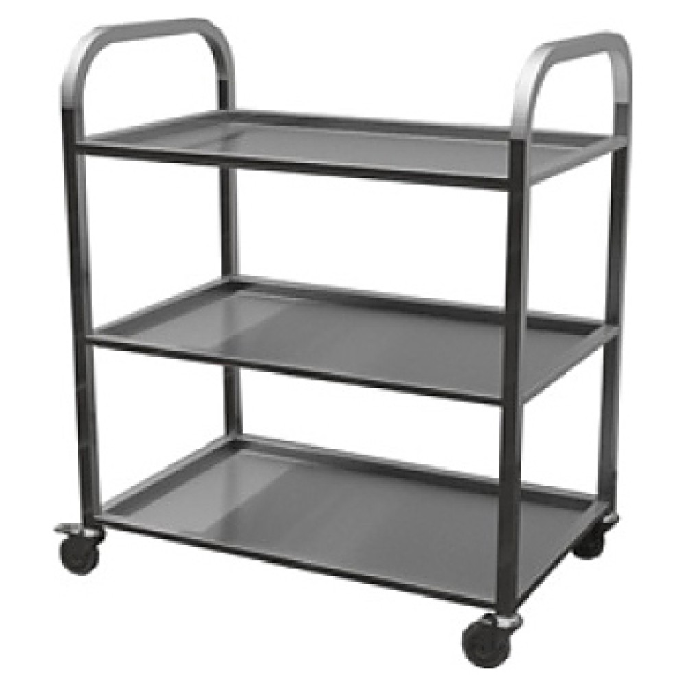 Сервировочная тележка Gastrolux ТС-084/3 используется на предприятиях общественного питания для транспортировки готовых блюд и грязной посуды. Каркас выполнен из нержавеющей стали AISI 430.