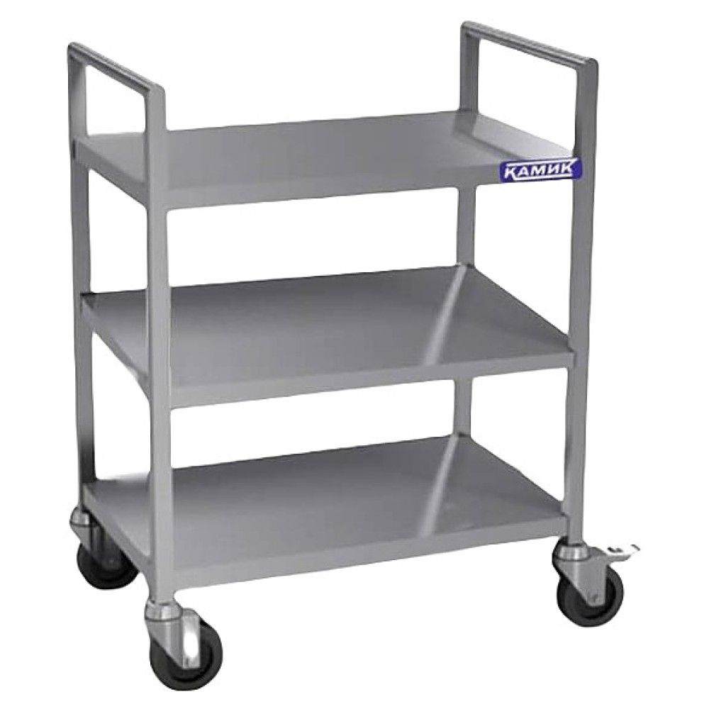 Сервировочная тележка КАМИК 1100х600х1000 мм используется на предприятиях общественного питания для доставки готовых блюд, сбора тарелок, чашек и стаканов со столов. Модель оснащена колесами. Каркас выполнен из нержавеющей стали AISI 430.