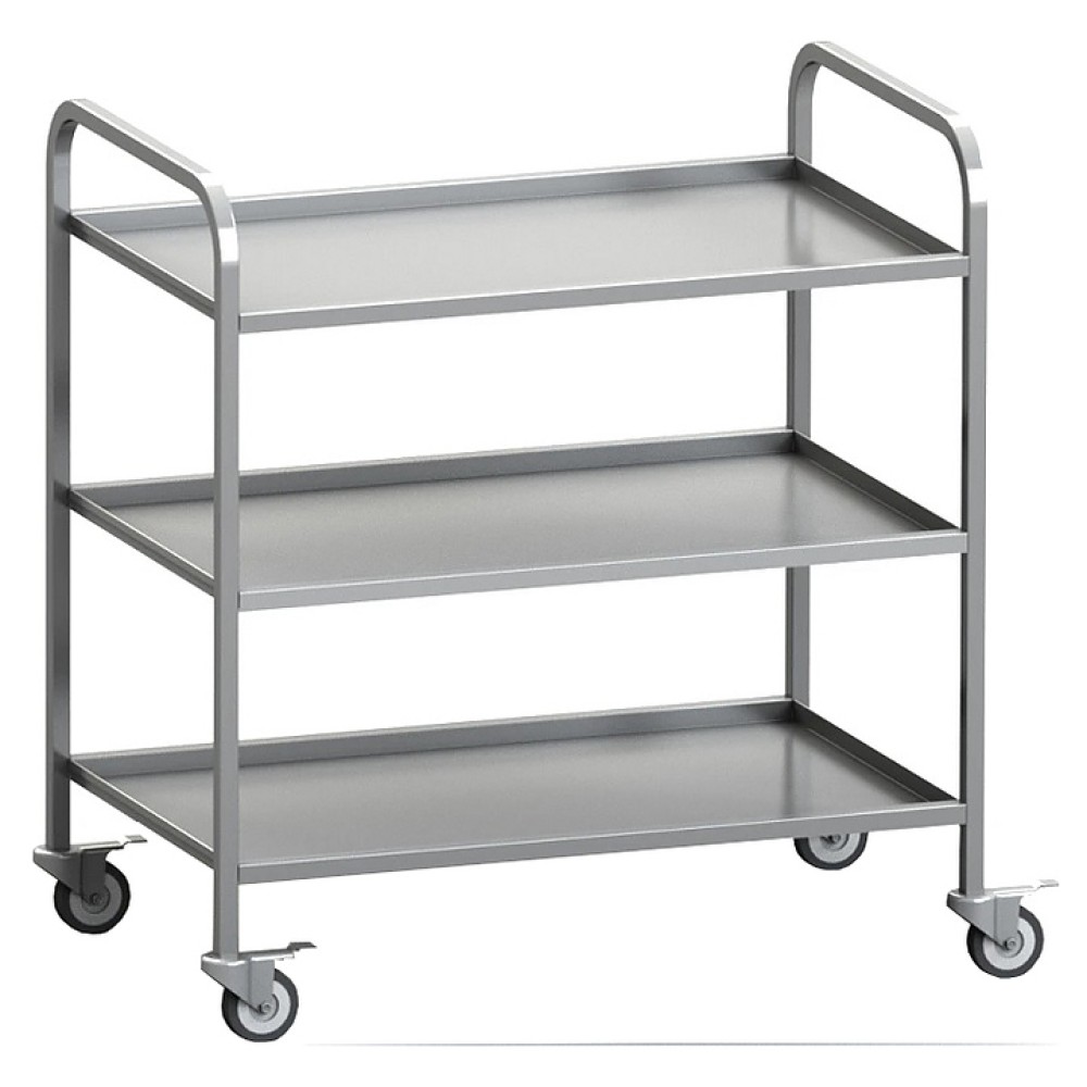 Сервировочная тележка MGSteel 73655 используется для транспортировки столовых приборов, тарелок с готовыми блюдами, грязной посуды на предприятиях общественного питания. Модель оснащена 3 вместительными полками с герметичными бортиками. Изделие выполнено из нержавеющей стали, которая отличается прочностью и долговечностью.
