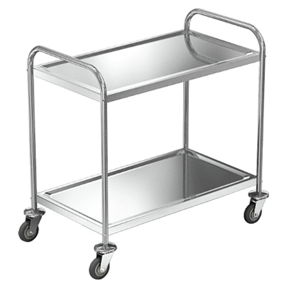 Сервировочная тележка Техно-ТТ ТПР-320/805 предназначена для доставки готовых блюд, сбора тарелок, чашек и стаканов со столов на предприятиях общественного питания и торговли. Модель оснащена 2 полками и 4 колесами, 2 из которых с тормозными устройствами. Разборный каркас выполнен из круглой трубы из нержавеющей стали AISI 201, полки - из нержавеющей стали AISI 430.