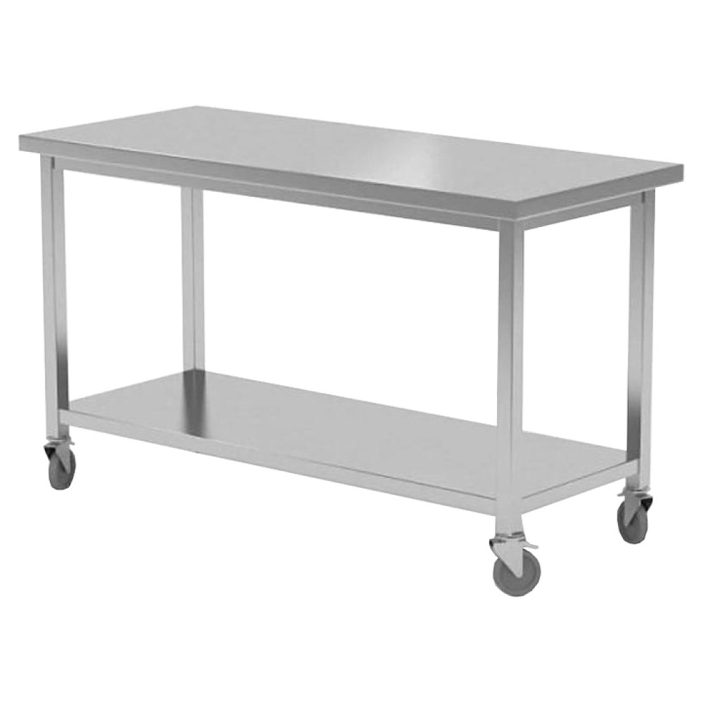 Стол-тележка Restoinox СТПК-15/9-П используется в прачечных для размещения белья. Модель оснащена 4 колесами, 2 из которых снабжены стопором. Ножки выполнены из квадратной трубы 40х40 мм нержавеющей стали Aisi 430, корпус, рабочая поверхность и полка - из нержавеющей стали Aisi 430, задняя стенка - из оцинкованной стали, столешница усилена листом ЛДСП.