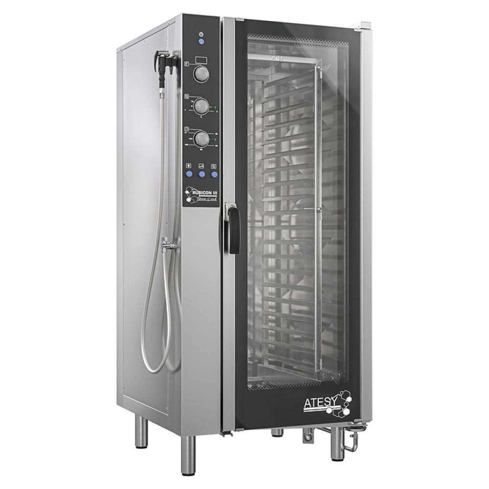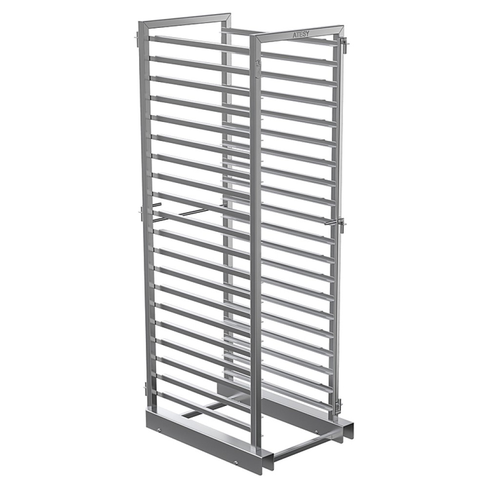 Шпилька ATESY РУБИКОН АПК-20-1.1-03-1 используется на предприятиях общественного питания и торговли для размещения на ней гастроемкостей и последующей установки в рабочую камеру пароконвектомата Рубикон АПК-20-1.1-03-01. Модель оснащена специальными запорными механизмами для надежной фиксации в камере пароконвектомата и на тележке. Изделие выполнено из нержавеющей стали AISI 304 толщиной 1,5 мм.