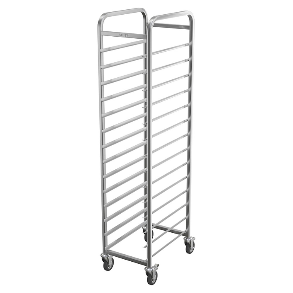 Тележка-шпилька ATESY КШ-Л-1.14-1.1-02 серии Люкс используется на предприятиях общественного питания и торговли для транспортировки и хранения гастроемкостей. Модель оснащена 4 поворотными колесами, 2 из которых снабжены тормозными устройствами. Сварная конструкция полностью выполнена из нержавеющей стали AISI 304.