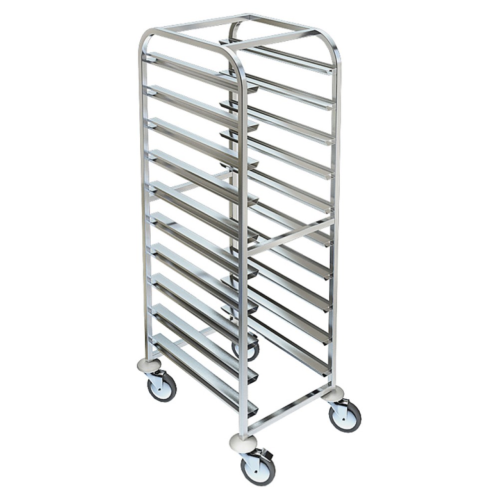 Тележка-шпилька KAYMAN СШ-11/101 используется на предприятиях общественного питания и торговли, а также в промышленно-производственных заведениях для транспортировки и хранения гастроемкостей и противней. Каркас и направляющие выполнены из нержавеющей стали AISI 304.