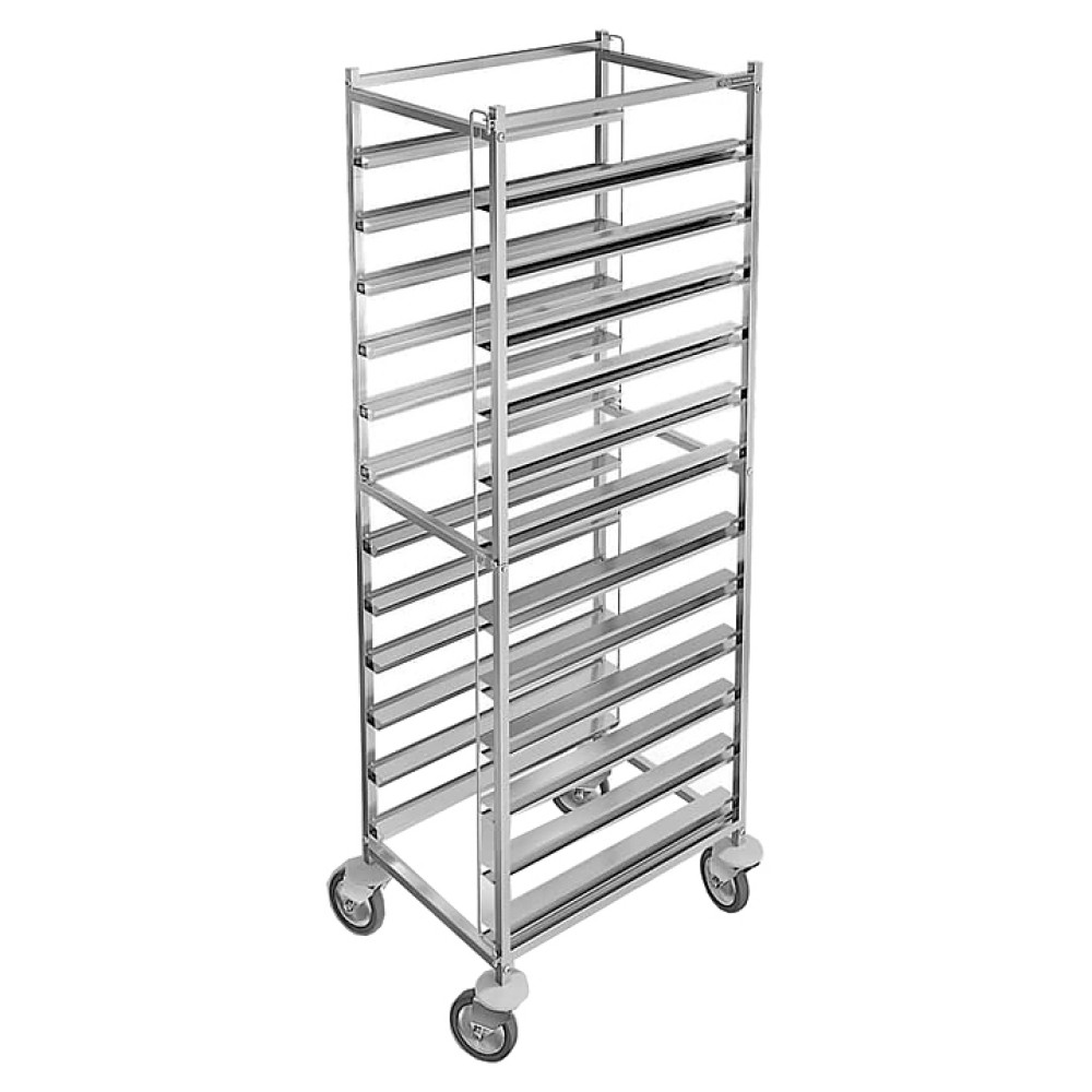 Тележка-шпилька KAYMAN СШ-41/122 используется на предприятиях общественного питания и торговли для транспортировки и хранения гастроемкостей и противней. Каркас и направляющие для 24 противней выполнены из нержавеющей стали AISI 430.