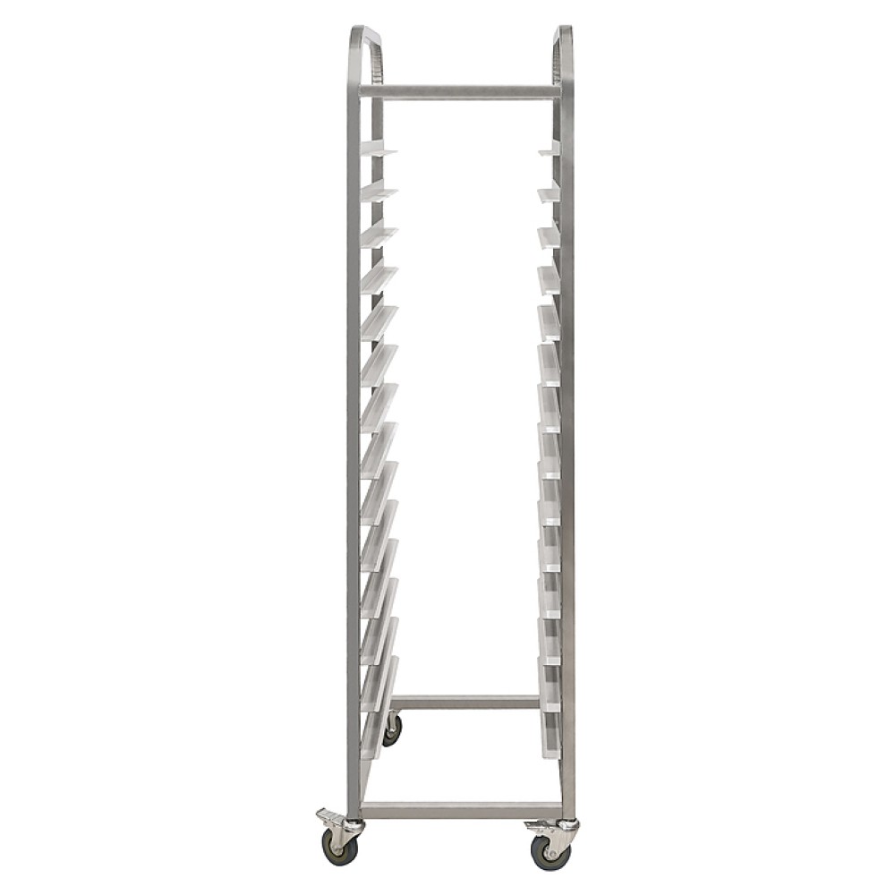 Тележка-шпилька Luxstahl ТШГ-14 используется на предприятиях пищевой промышленности, общественного питания и торговли для хранения и транспортировки гастроемкостей. Модель оснащена обрезиненными поворотными колесами, 2 из которых - с тормозами. Сварной каркас выполнен из нержавеющей стали.