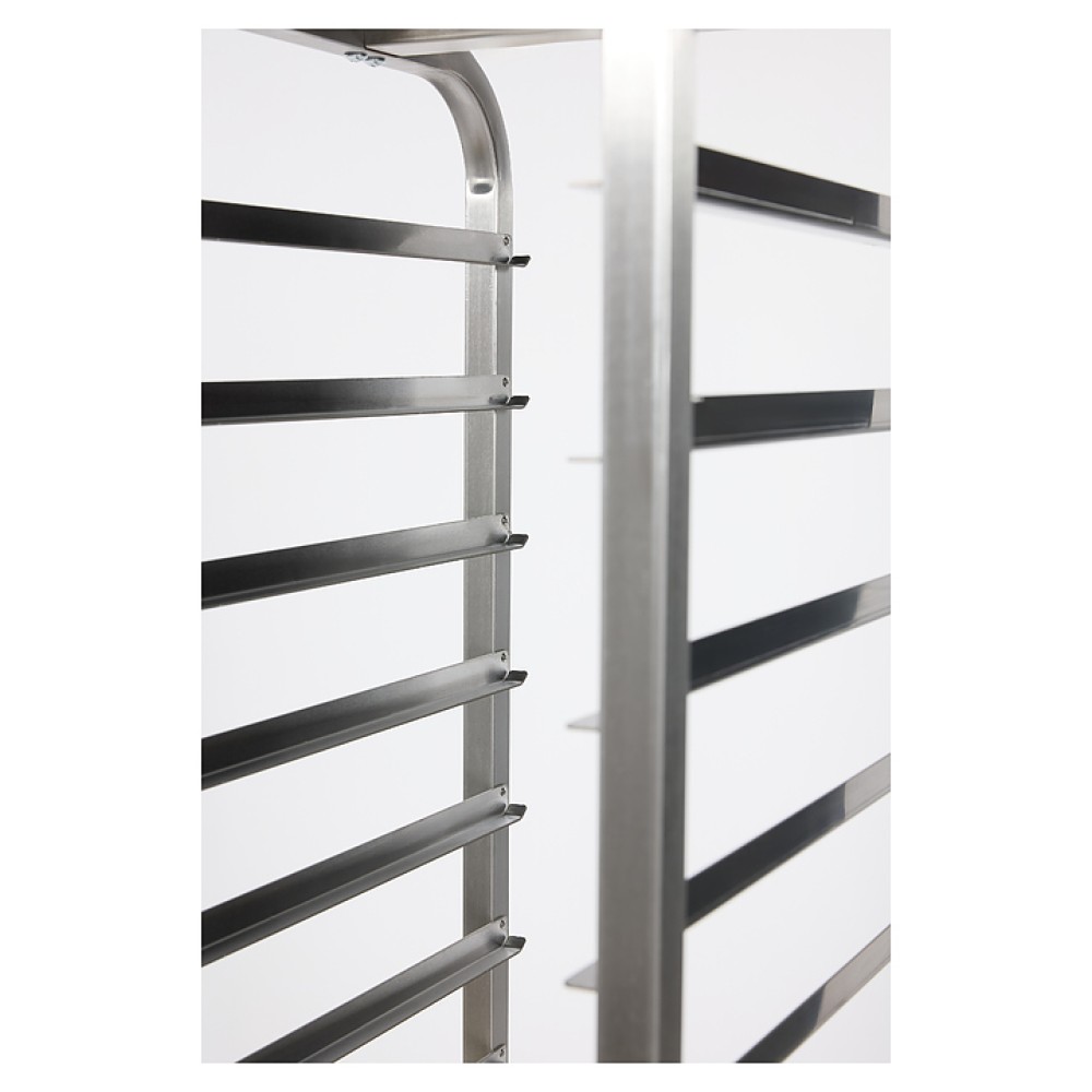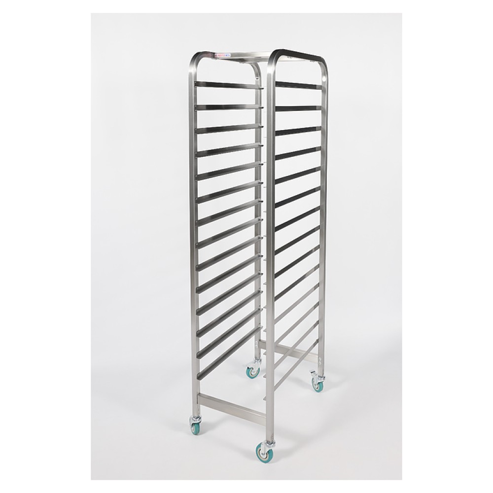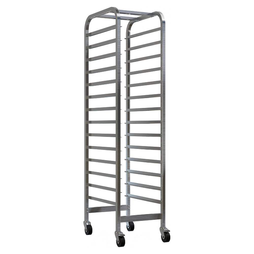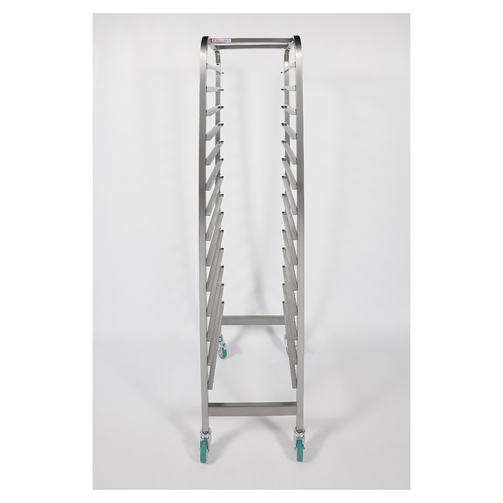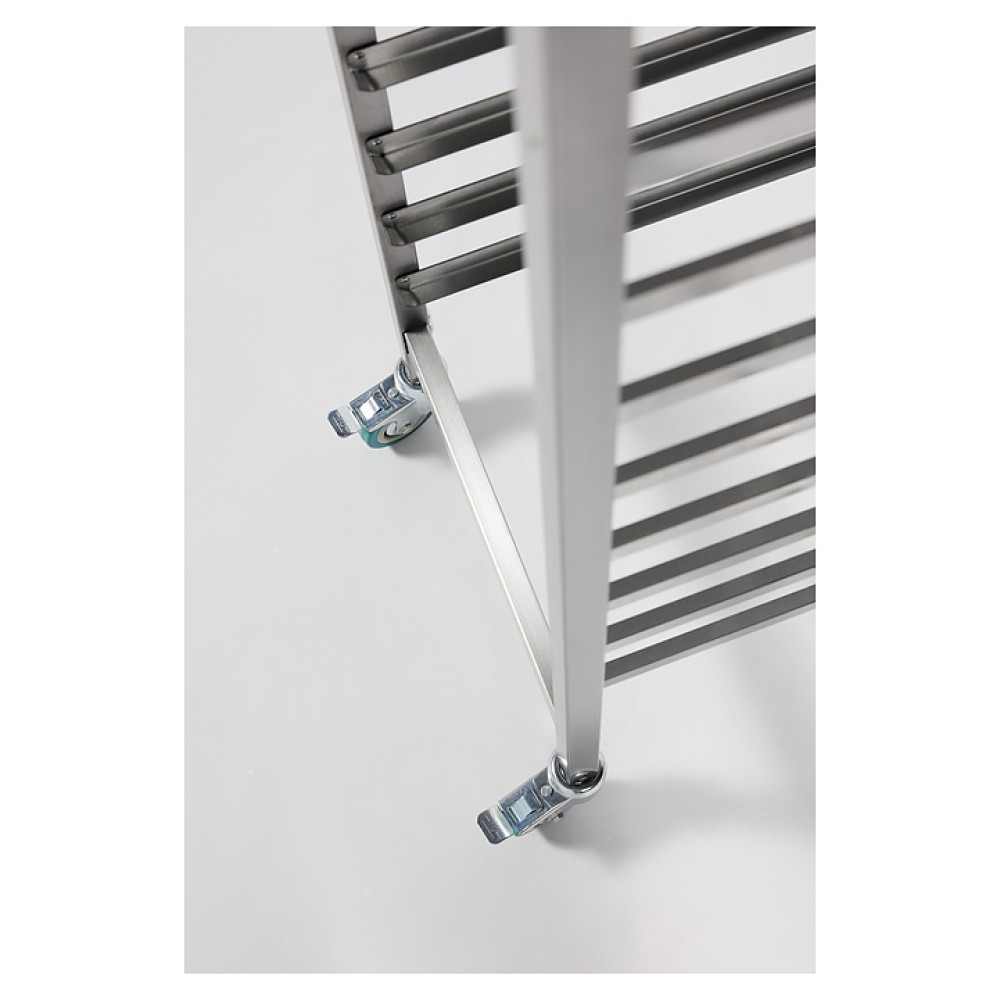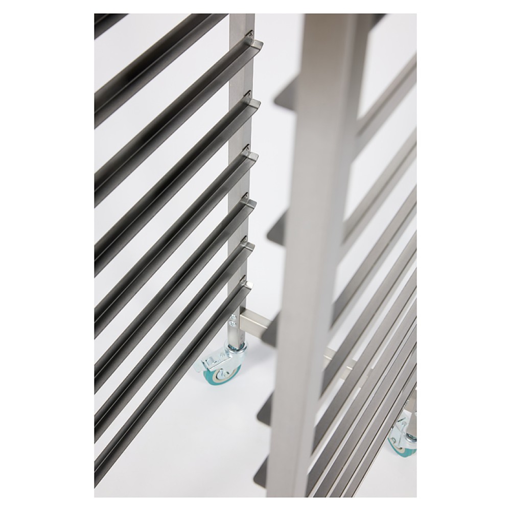 Тележка-шпилька Restoinox ТШРГ-14 GN 1/1 предназначена для хранения и транспортировки гастроемкостей на предприятиях общественного питания и торговли. Модель оснащена 4 поворотными колесами, 2 из которых со стопорами. Разборный каркас выполнен из квадратной трубы 25х25 мм нержавеющей стали Aisi 430, направляющие - из нержавеющей стали Aisi 430.