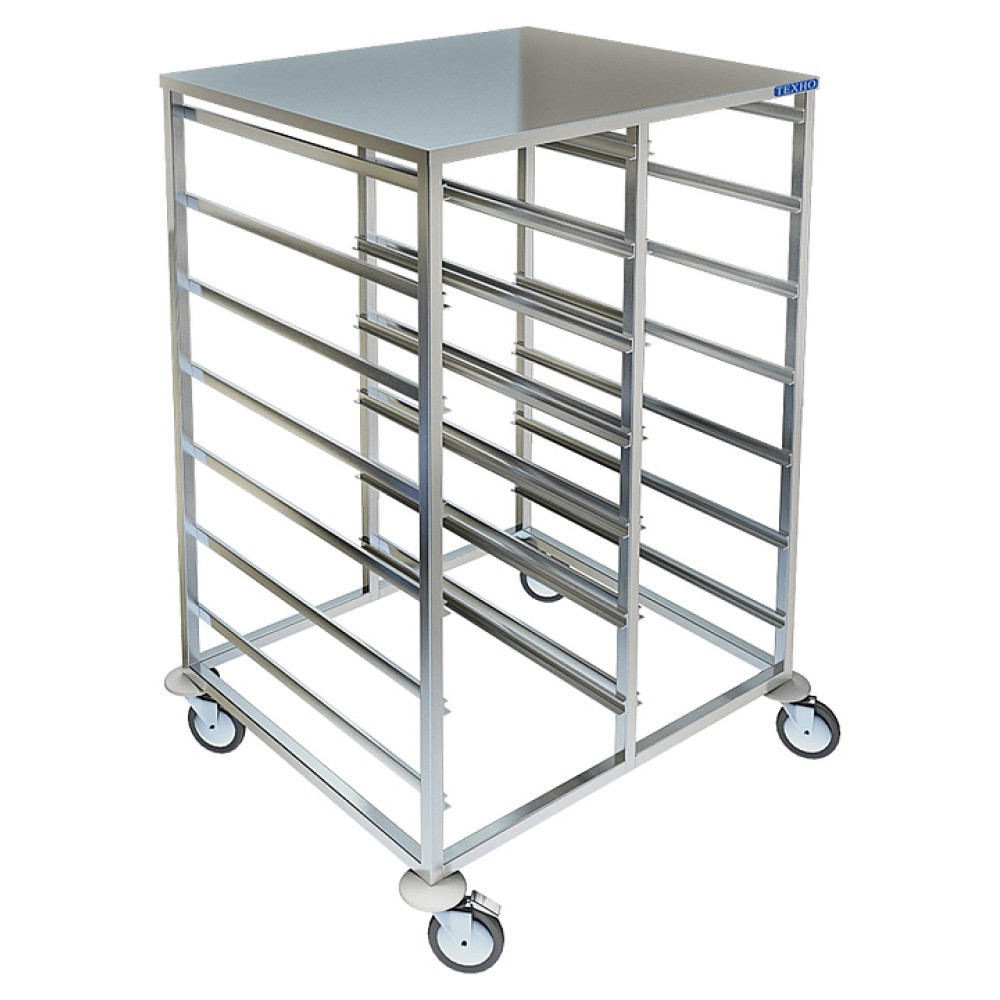 Тележка-шпилька для гастроёмкостей Техно-ТТ ТП-376/1 предназначена для транспортировки, хранения сырья и готовых пищевых продуктов на предприятиях общественного питания и торговли. Модель оснащена столешницей и 4 колесами, 2 из которых с тормозными устройствами. Сварной каркас и столешница выполнены из нержавеющей стали AISI 304.